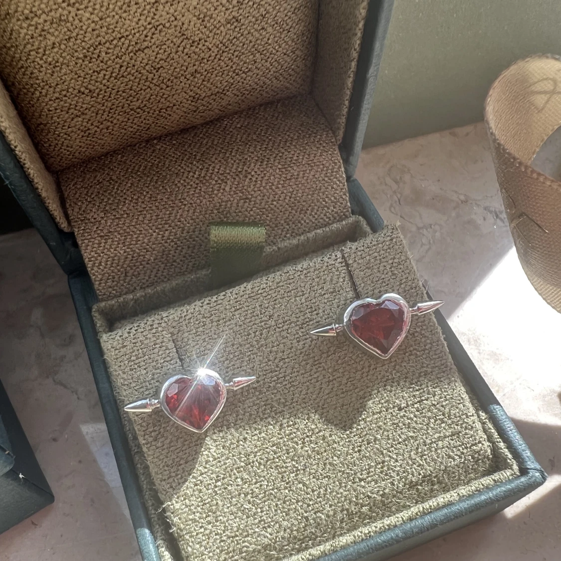 925 silver örhängen med röd granat. Maria nilsdotter inspirerade och ser likadana ut som pierced heart örhängena! Köp båda för 1200 eller ett för 700. Handgjorda därför bör dessa tas hand om noga och försiktigt