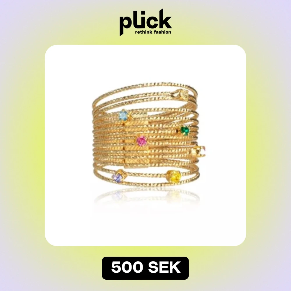 Caroline Svedbom Rainbow ring. Aldrig använd. Så fin ring med Swarovski kristaller i olika färger – magiskt vacker! Säljs inte längre i butik, så passa på! Jag har storlek 54 vanligtvis på fingret jag visar på bilden. Jag tror detta kan vara 52