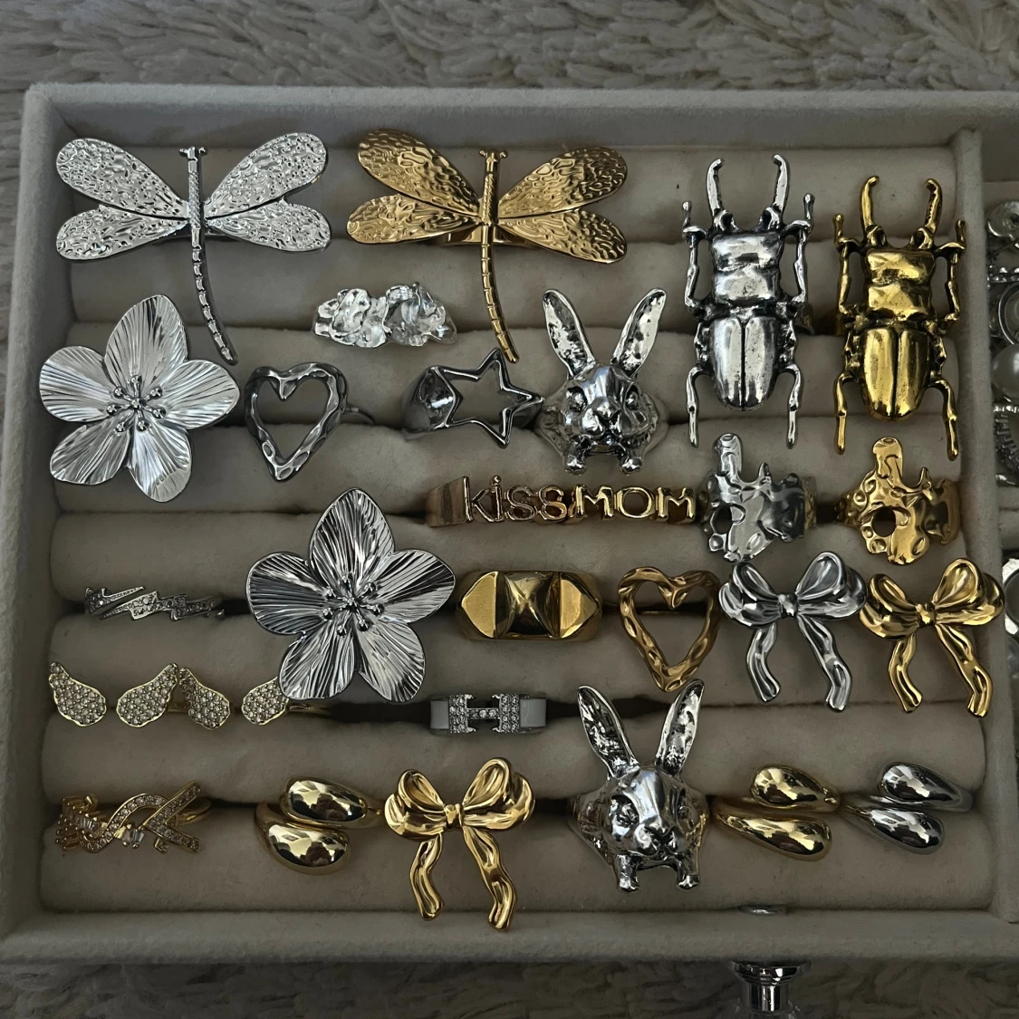 Säljer justerbara (inte alla) smycken i guld och silver. alla är helt nya. Stora ringar 99kr st. Små ringar 89kr st. Halsband 99kr st. Örhängen 99kr. Vid köp av fler saker får du rabatt 🎀skriv till mig innan du köper för att vara säker på att smycket inte är sålt!💕 det finns separata annonser för varje smycke. Köpt gärna genom bundle om du vill köpa flera!💘