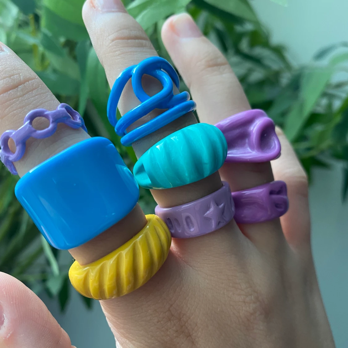Säljer dessa fina ringar för 10kr st. De tre ringarna på andra bilden är justerbara. Jättefina somriga färger på alla ringarna!💕 frakten blir 12kr