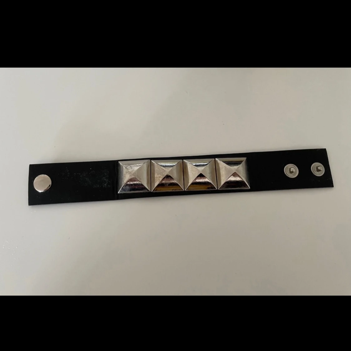 Nitarmband i begagnat använt skick. Vissa av nitarna släpper lite i ena hörnet när armbandet är stängt, se bild 3. Frakt på 22 kr tillkommer. Betalning sker vis Swish.