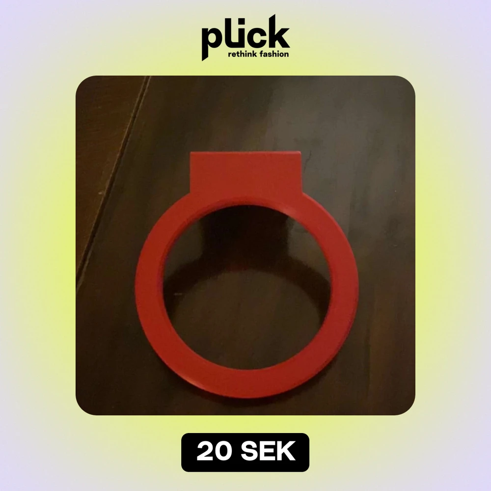 Säljer en röd basketboll hållare i plast. Bollen får plats i mitten och håller den i plats
