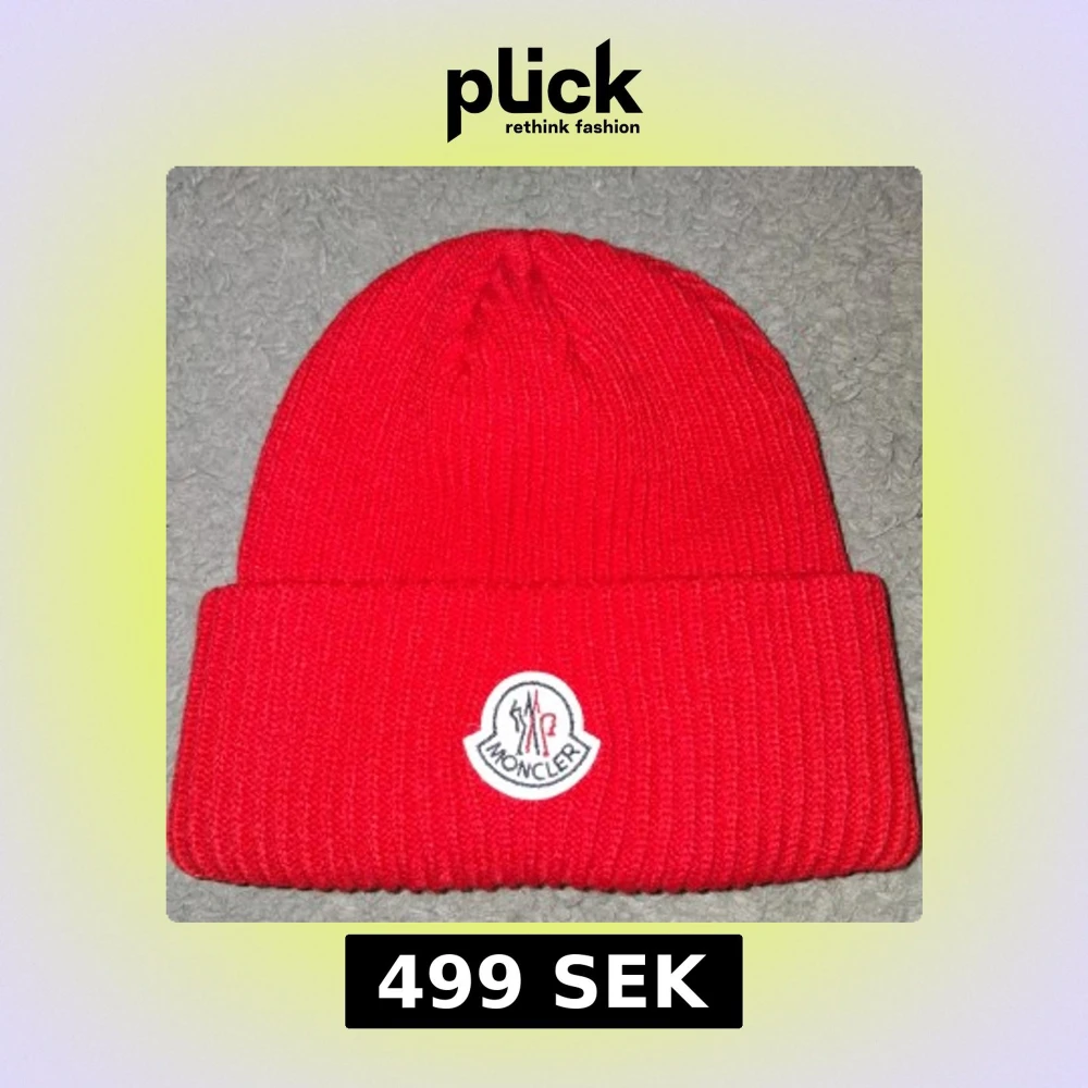 Säljer en snygg röd mössa från Moncler i ribbstickad ull. Klassisk modell med uppvikt kant och Moncler-logga framtill. Perfekt accessoar för att hålla värmen och lyfta din outfit med en pop av färg.