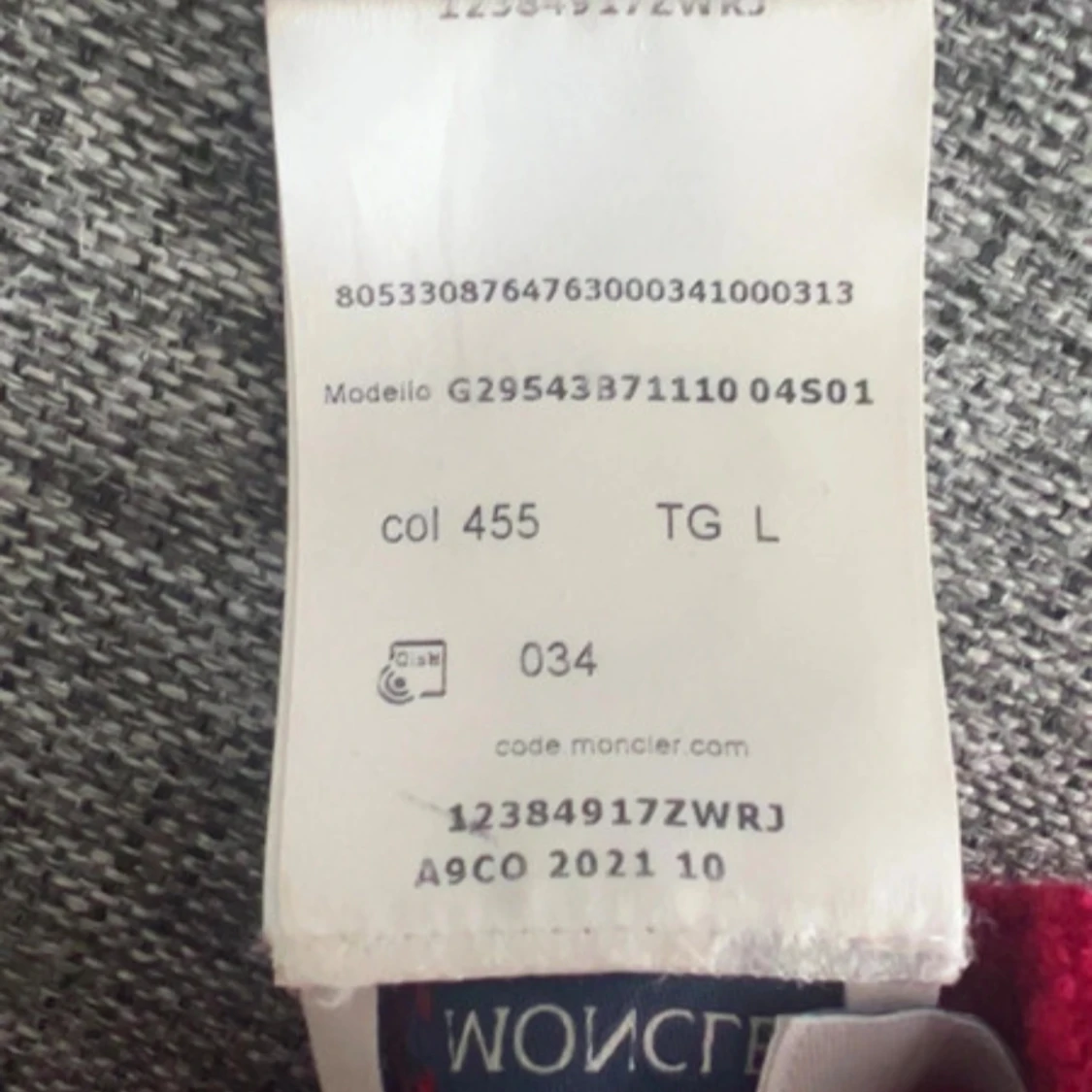 Röd Moncler mössa med pälsboll