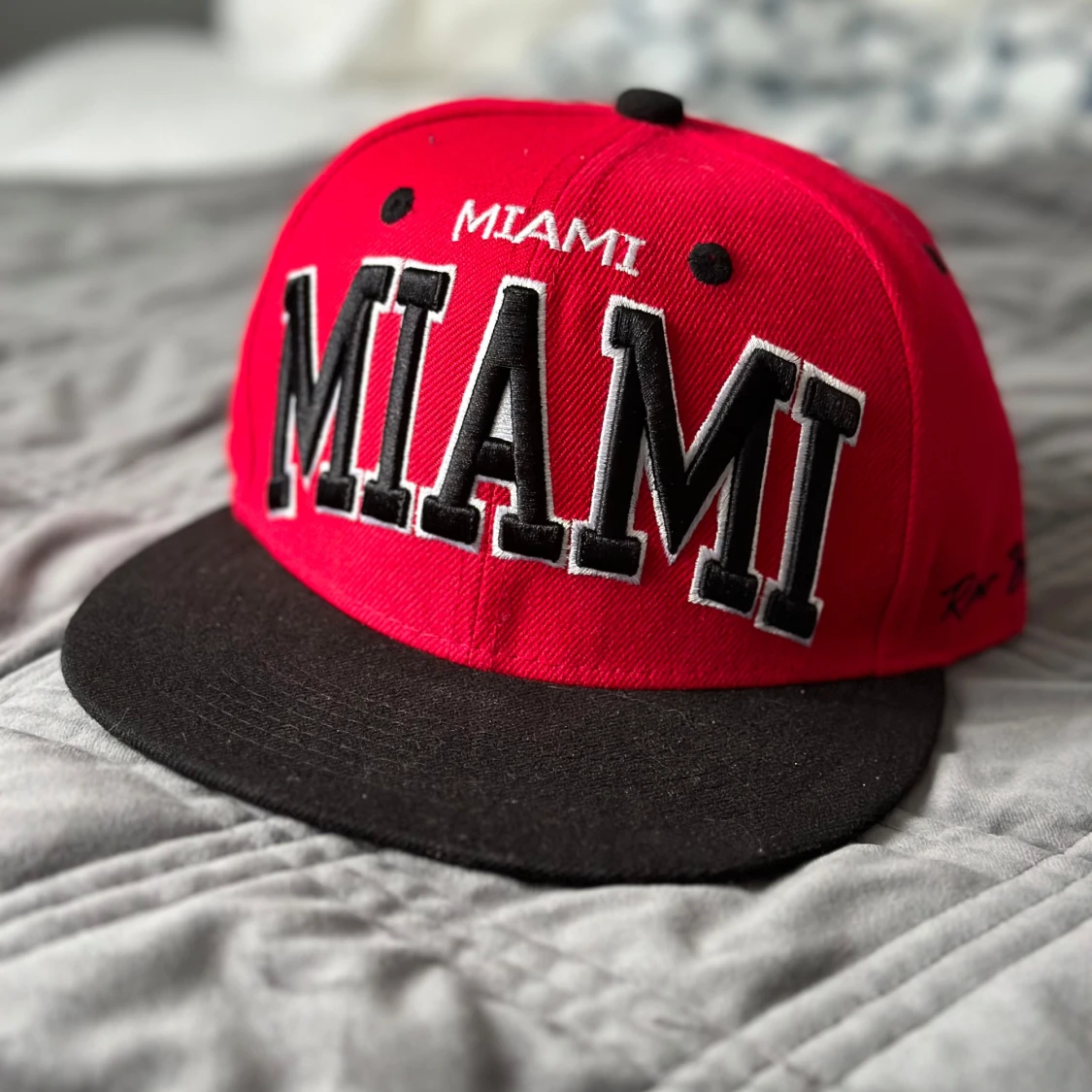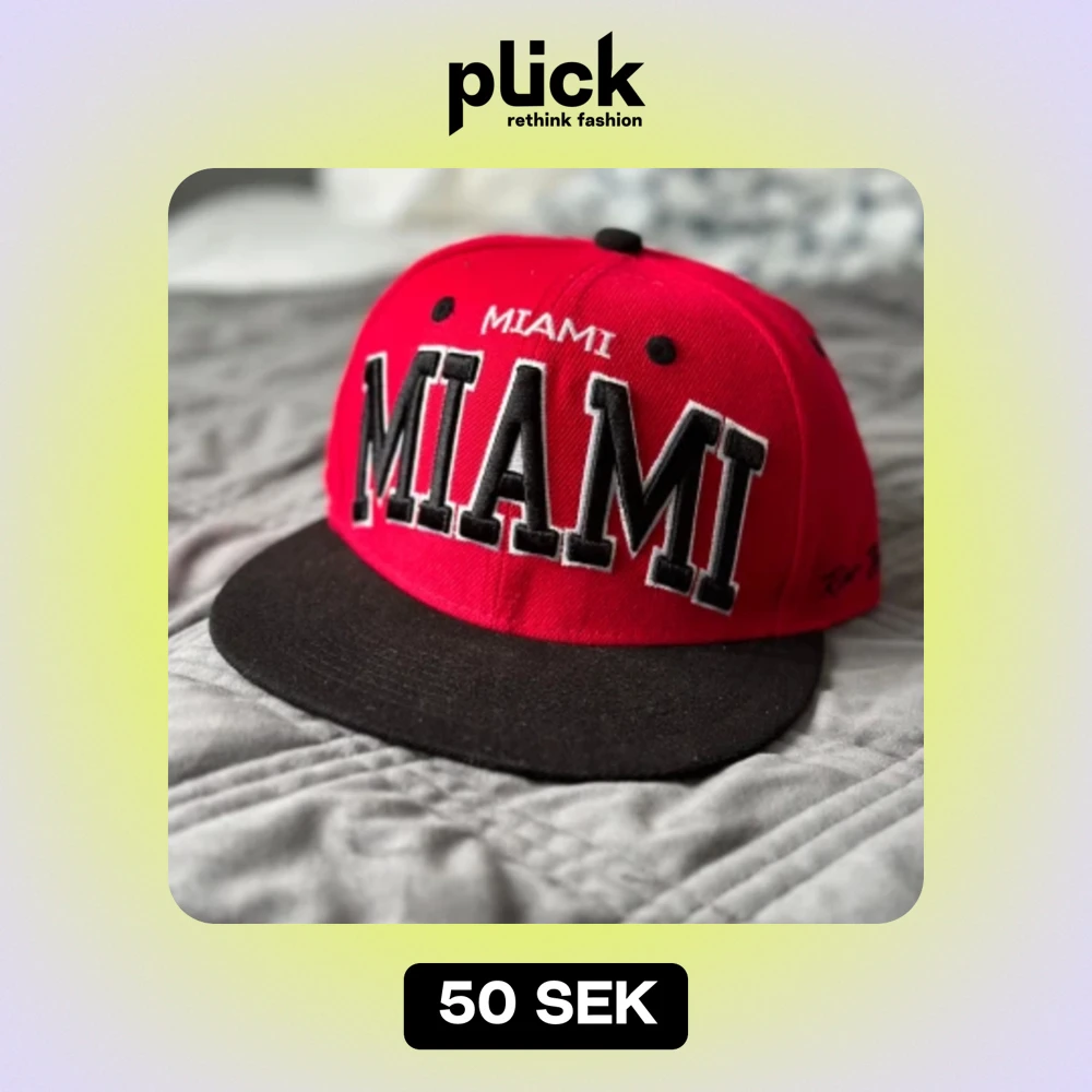 Säljer en snygg keps i mycket fint skick . Kepsen har texten 'MIAMI' broderad både fram och bak. Den har en justerbar passform.