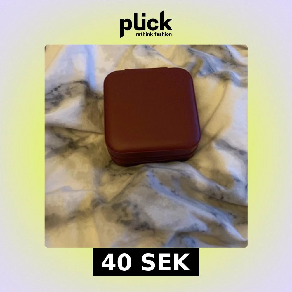 Praktiskt rött smyckeskrin med flera fack för organisering av smycken. Insidan är klädd i mjukt material för att skydda dina smycken. Perfekt för att hålla ordning på ringar, halsband och örhängen.