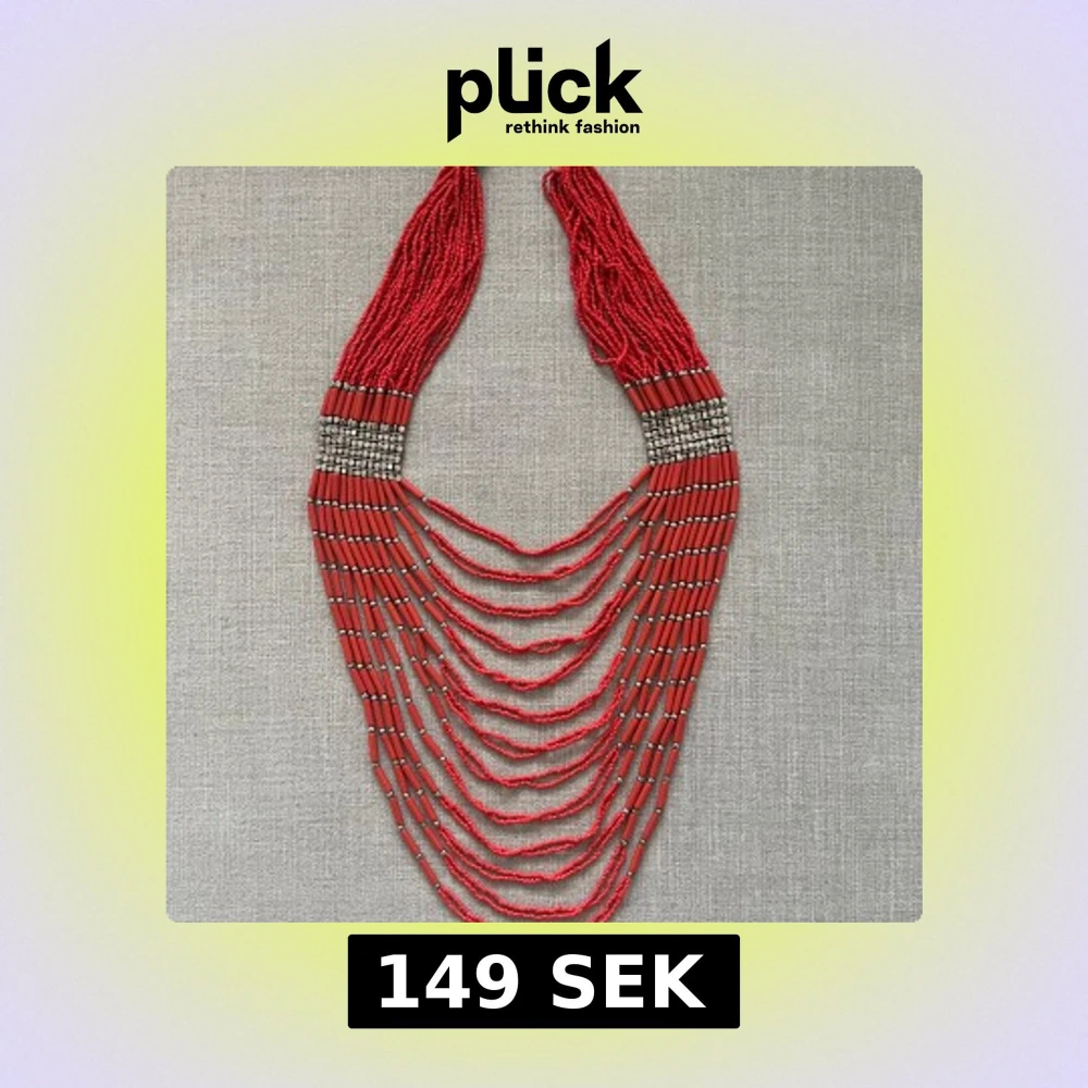 Vintage och unikt rött halsband med flera rader av små och avlånga pärlor. Inga defekter!