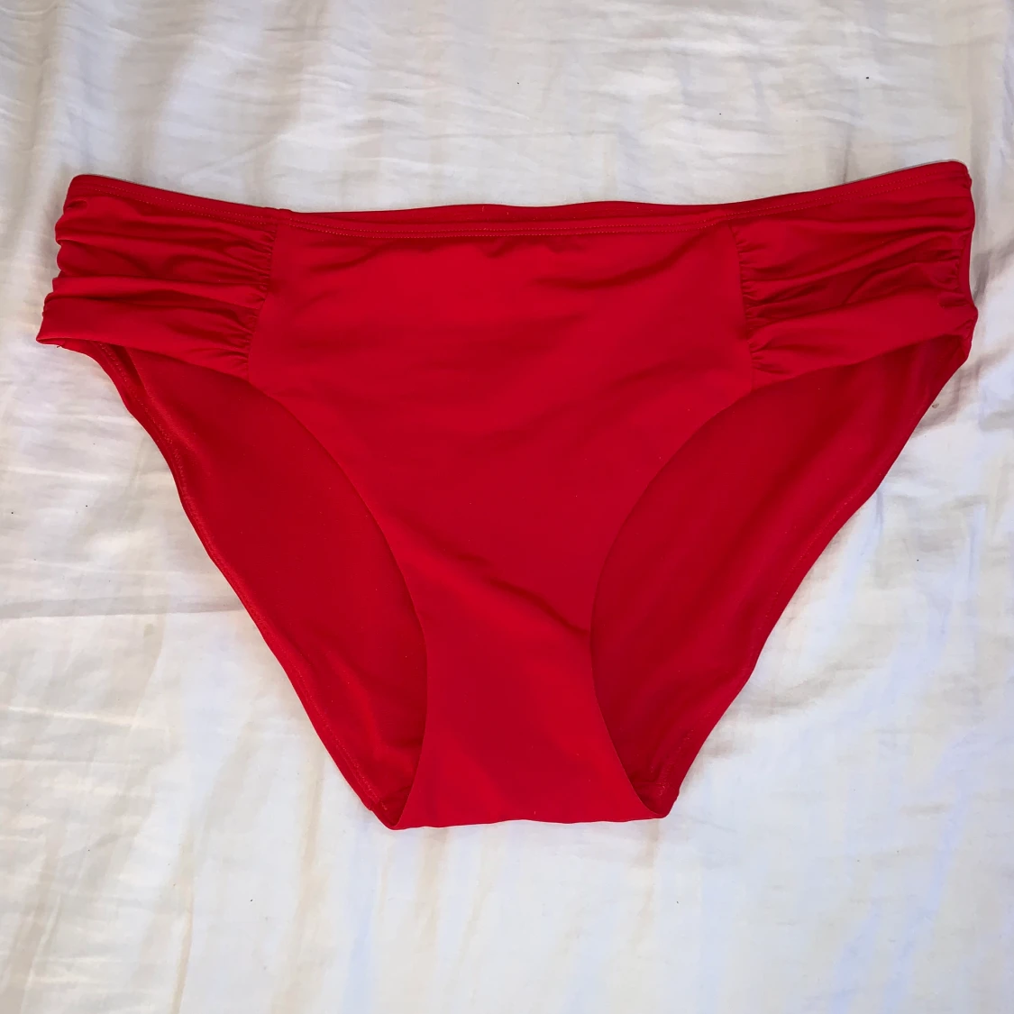 Röd bikini från Kappahl i storlek L. Söta volanger på toppen och superfin underdel. Säljer pga att jag aldrig använt den, köparen står för frakt (45kr) ☺️