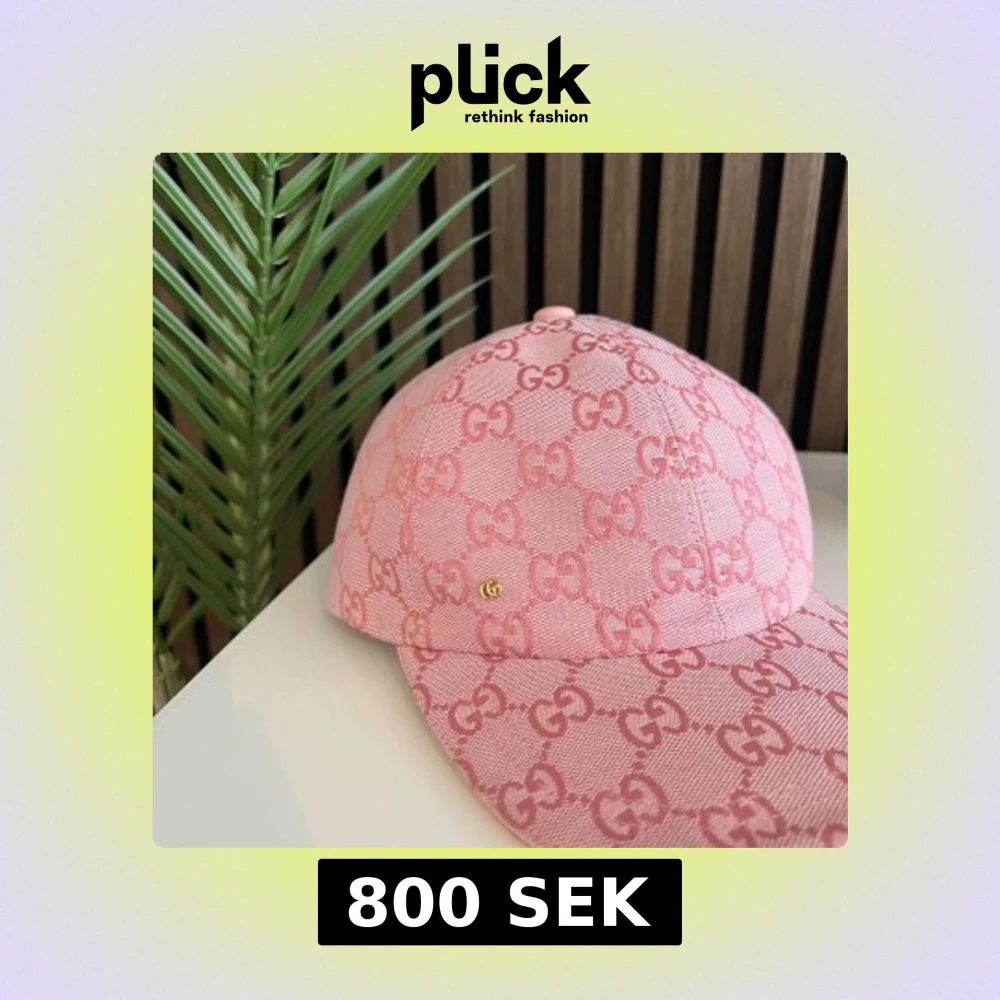 Säljer en snygg rosa keps från Gucci med ikoniskt GG-mönster över hela kepsen. Justerbar rem bak i rosa läder och klassisk böjd skärm. Perfekt accessoar för dig som vill sticka ut med lyxig streetstyle.