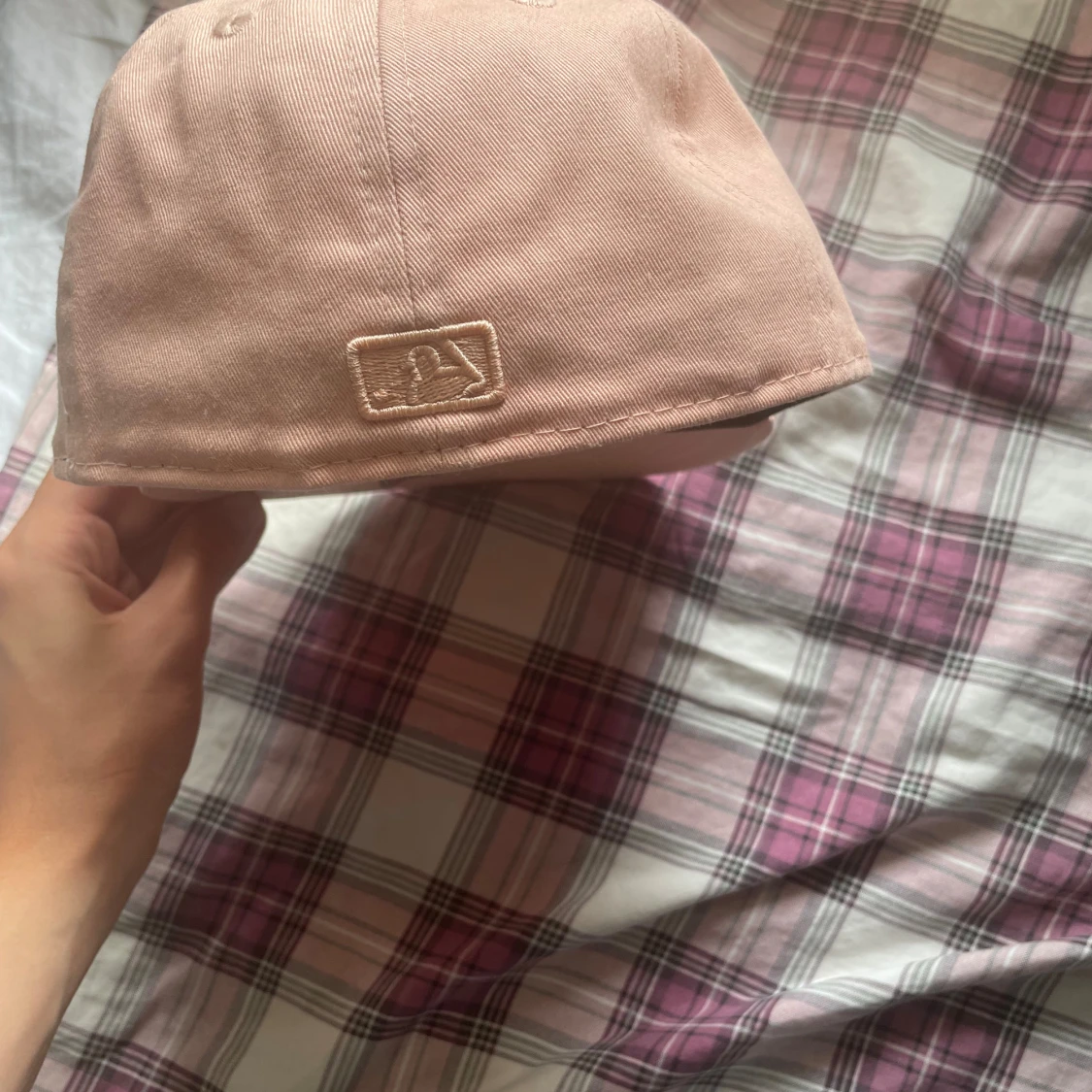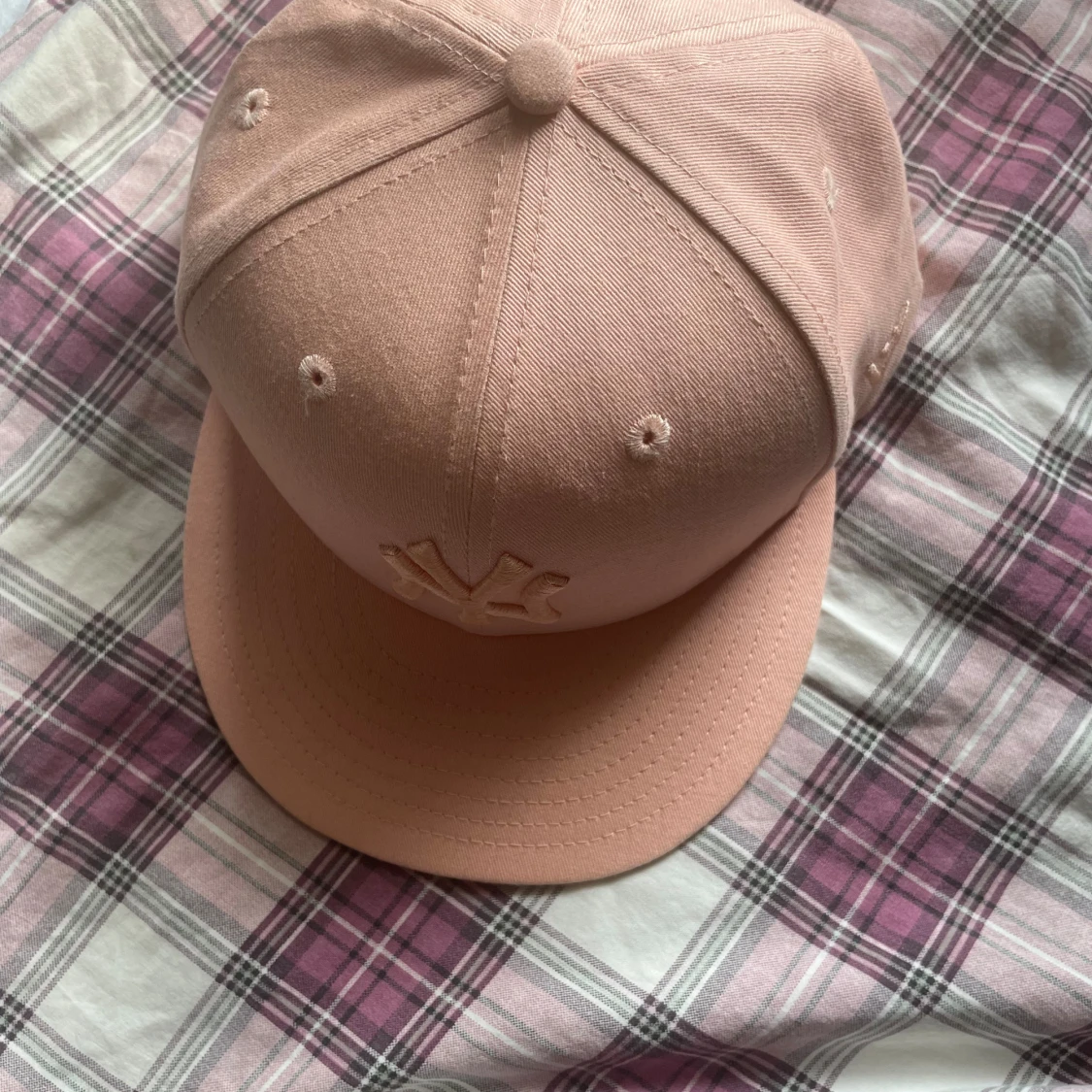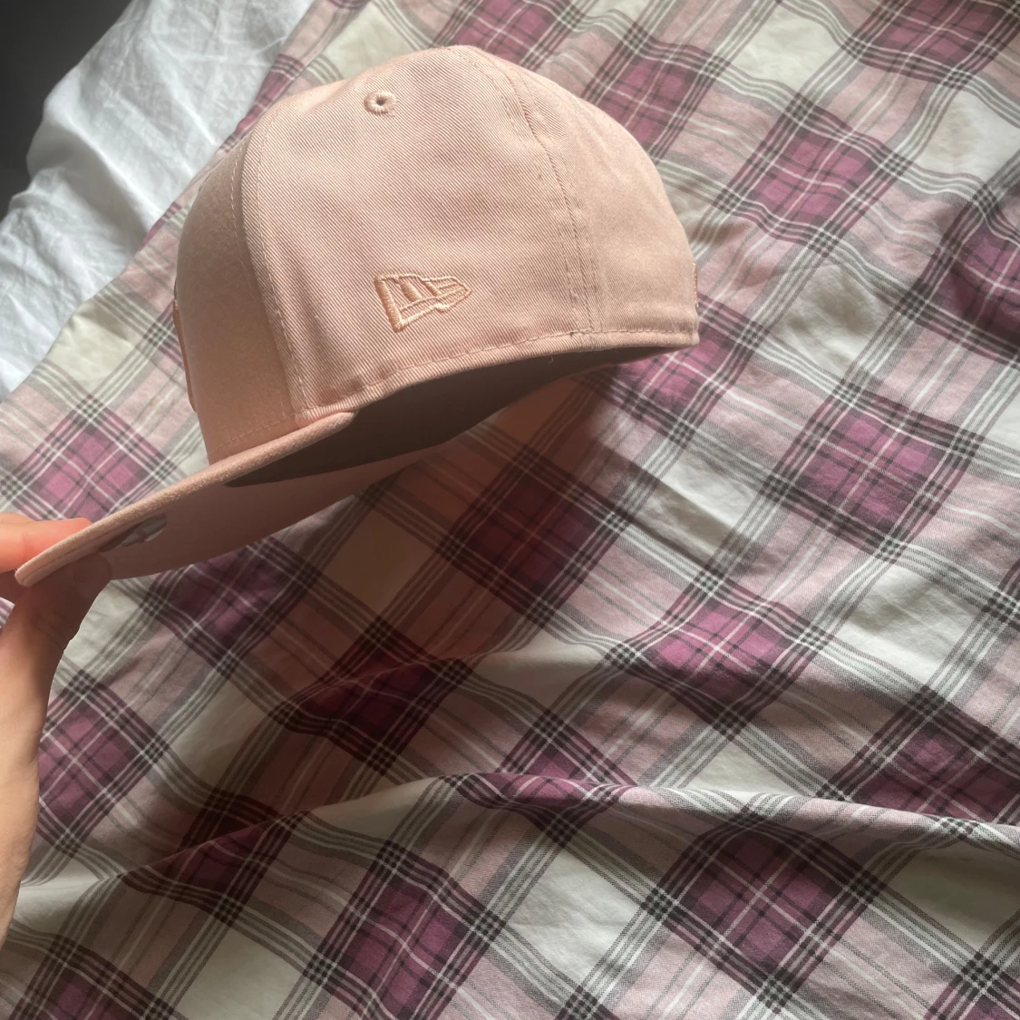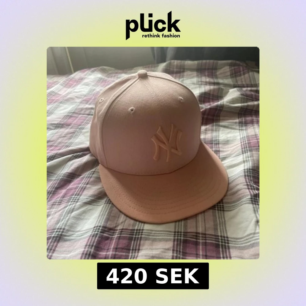Säljer en snygg rosa keps från New Era med en broderad logga framtill. Kepsen har en klassisk design med en rak skärm och är perfekt för både vardag och sportiga aktiviteter. Den är i bra skick och redo för nya äventyr! Storlek 7/55,8cm