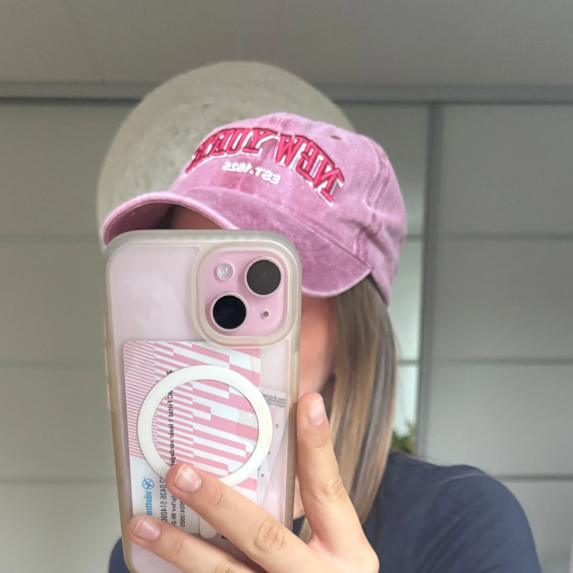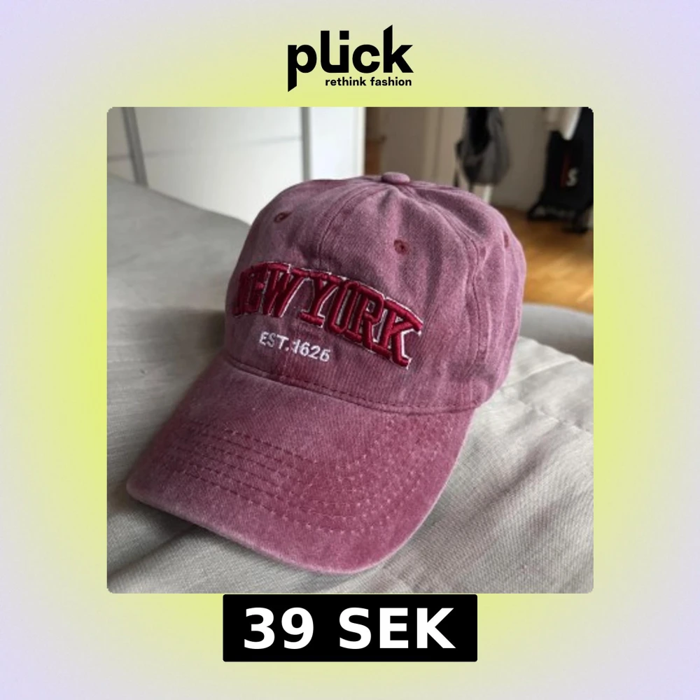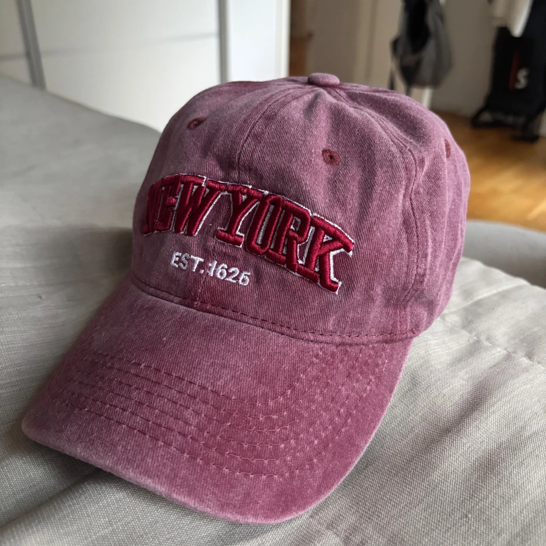Snygg rosa keps med broderad text 'NEW YORK EST. 1626 i rött och vitt framtill. Klassisk böjd skärm och justerbar passform bak. Perfekt accessoar för en chill och sportig look. Vet tyvärr inte märke