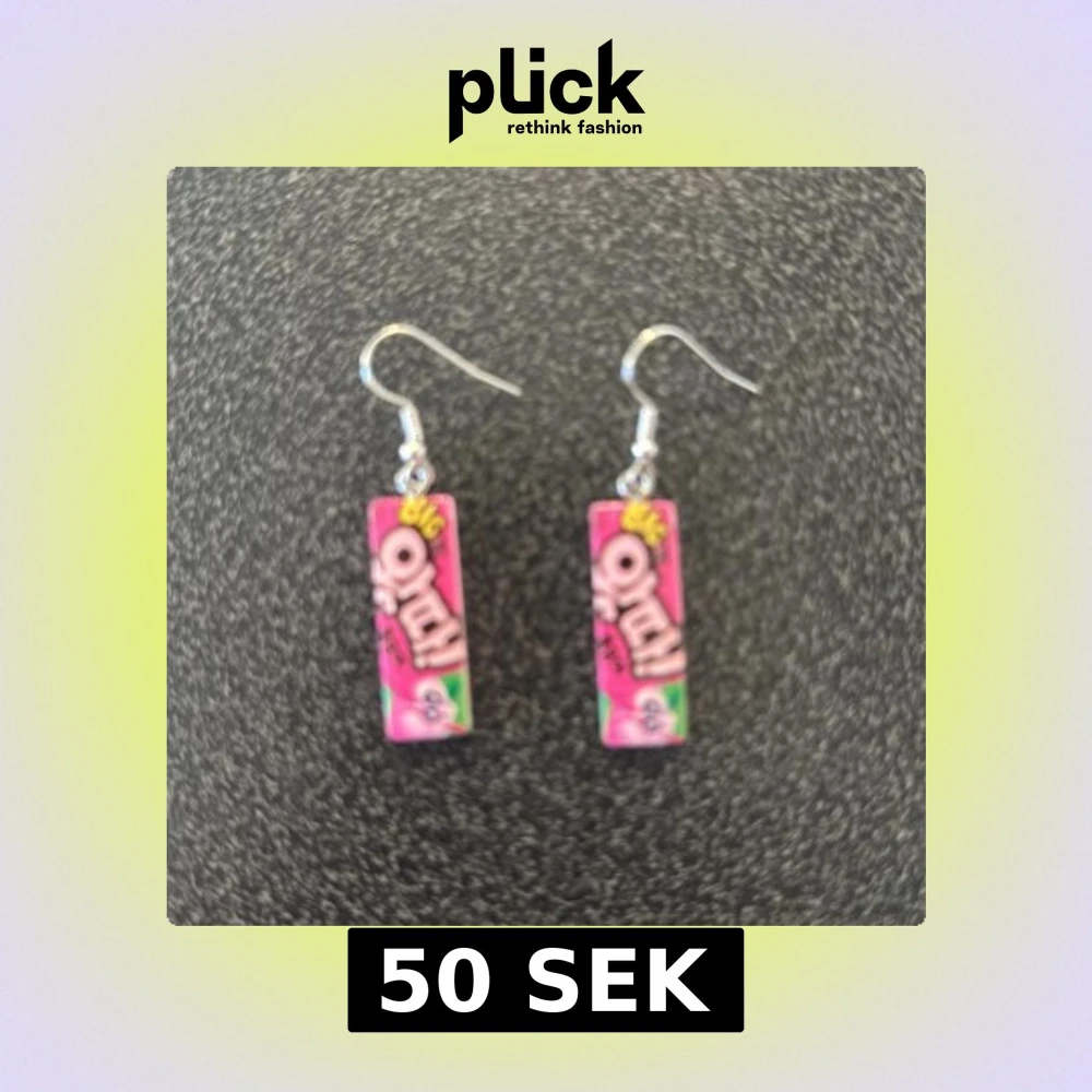 Unika örhängen med ett färgglatt godismotiv i rosa och grönt. Perfekta för att lägga till en lekfull touch till din stil. De hänger från en enkel krok och är lätta att bära.