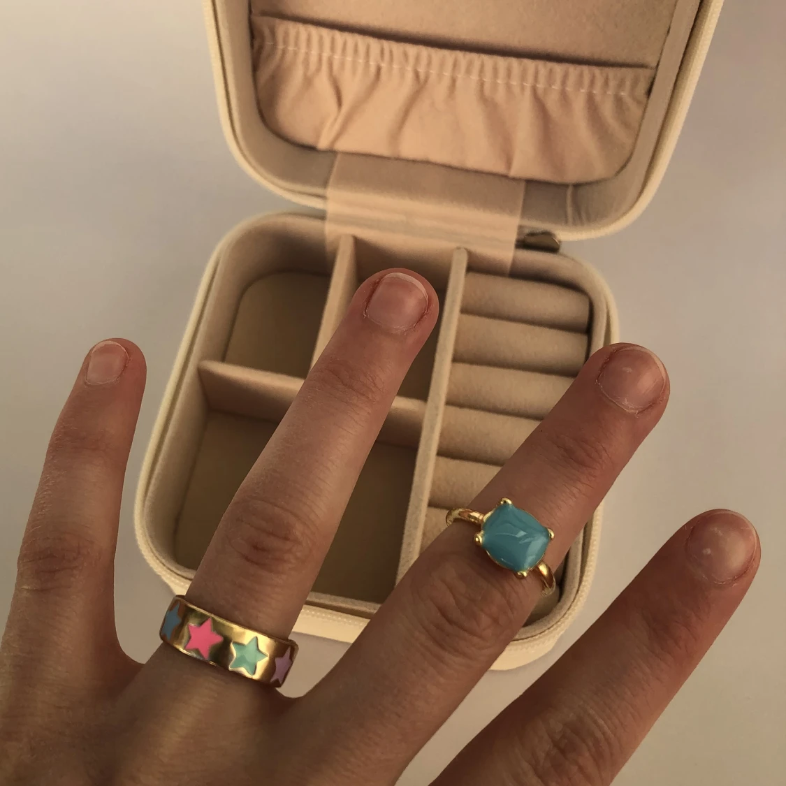 Två stycken supersöta ringar perfekt inför sommaren. Helt nya och oanvända. Den med stjärnor går att justera. Stjärniga 50kr den blåa 30kr, båda för 60kr! Frakt på 18kr tillkommer.skriv gärna vid frågor 💗