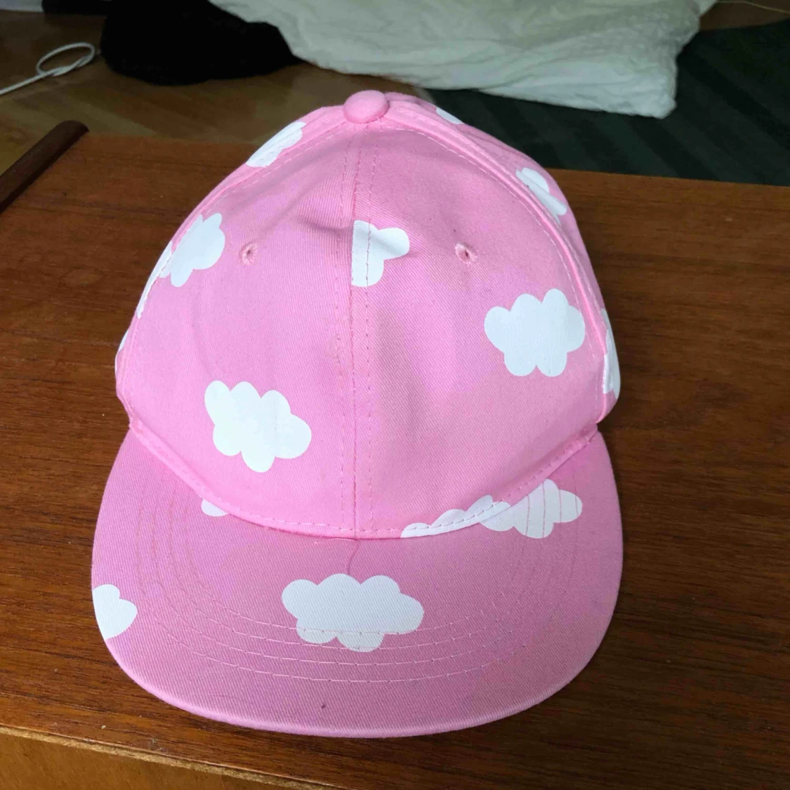 Rosa keps med små vita moln. Justerbar rem där bak, frakt tillkommer!