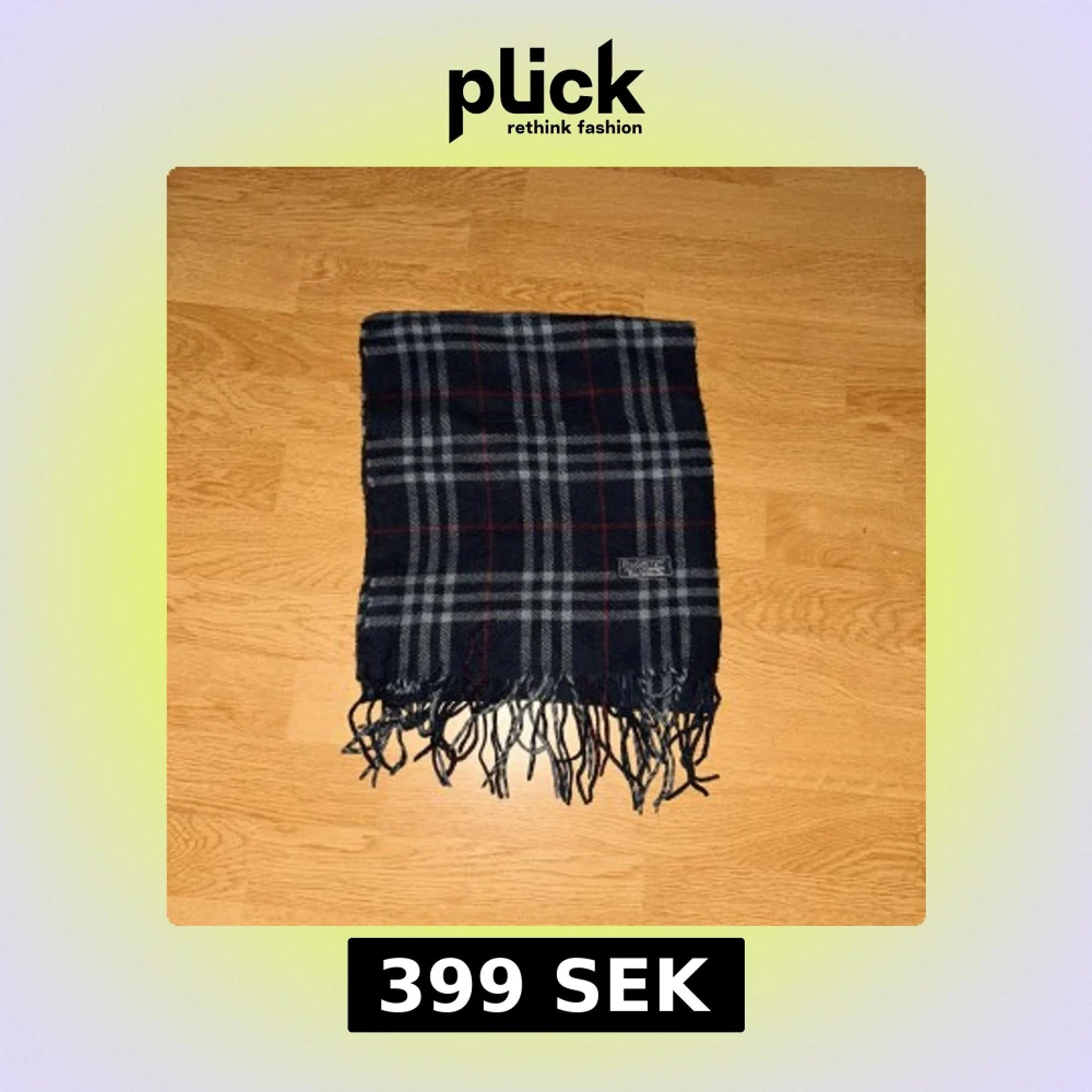 Snygg lång halsduk från burberry med klassiskt rutigt mönster i mörkblått, grått och röda linjer. Gjord i cashmere och har fransar i ändarna. Perfekt att slänga över axlarna för en cool och tidlös look.