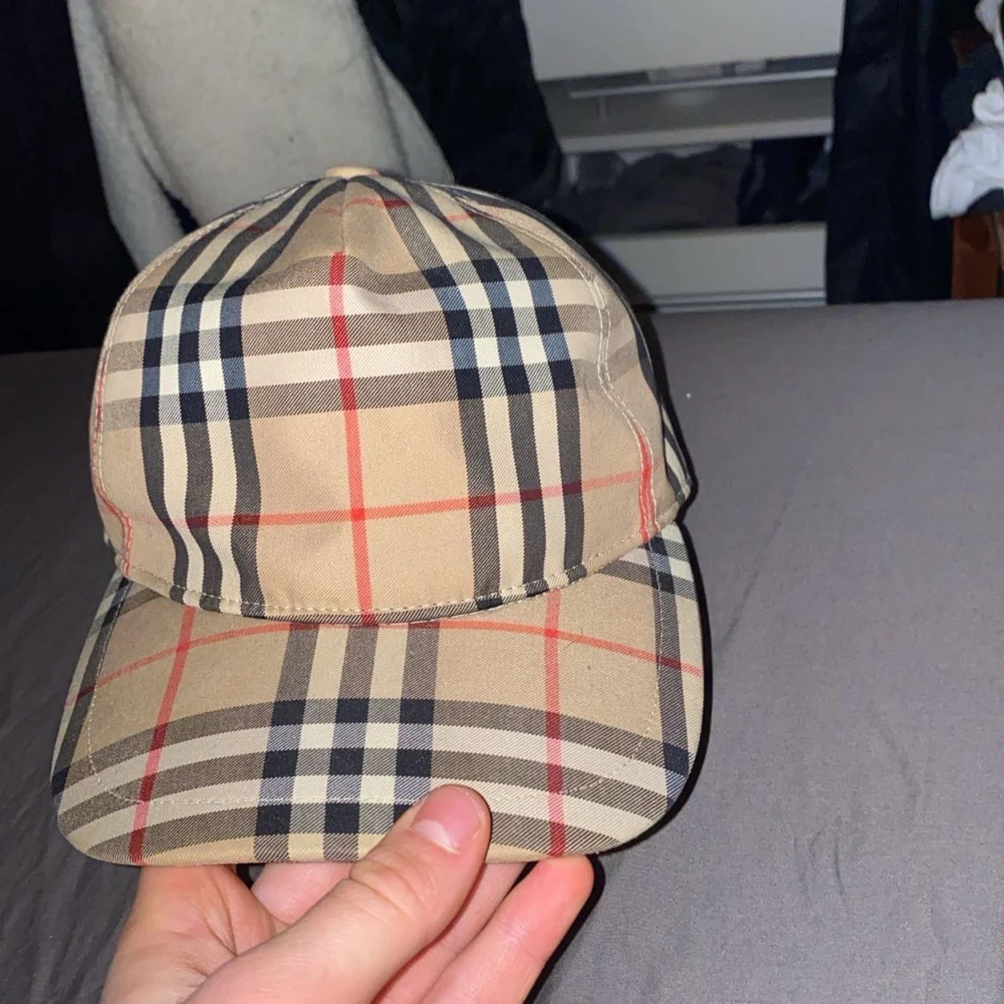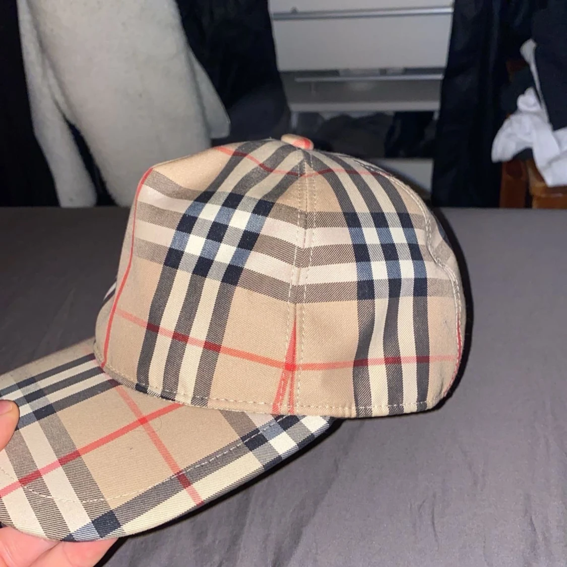 Snygg rutig keps från Burberry i beige, svart och röd. Perfekt för en stilren look med justerbar Storlek. Nästan oanvänd, men inte säker på om den är äkta.