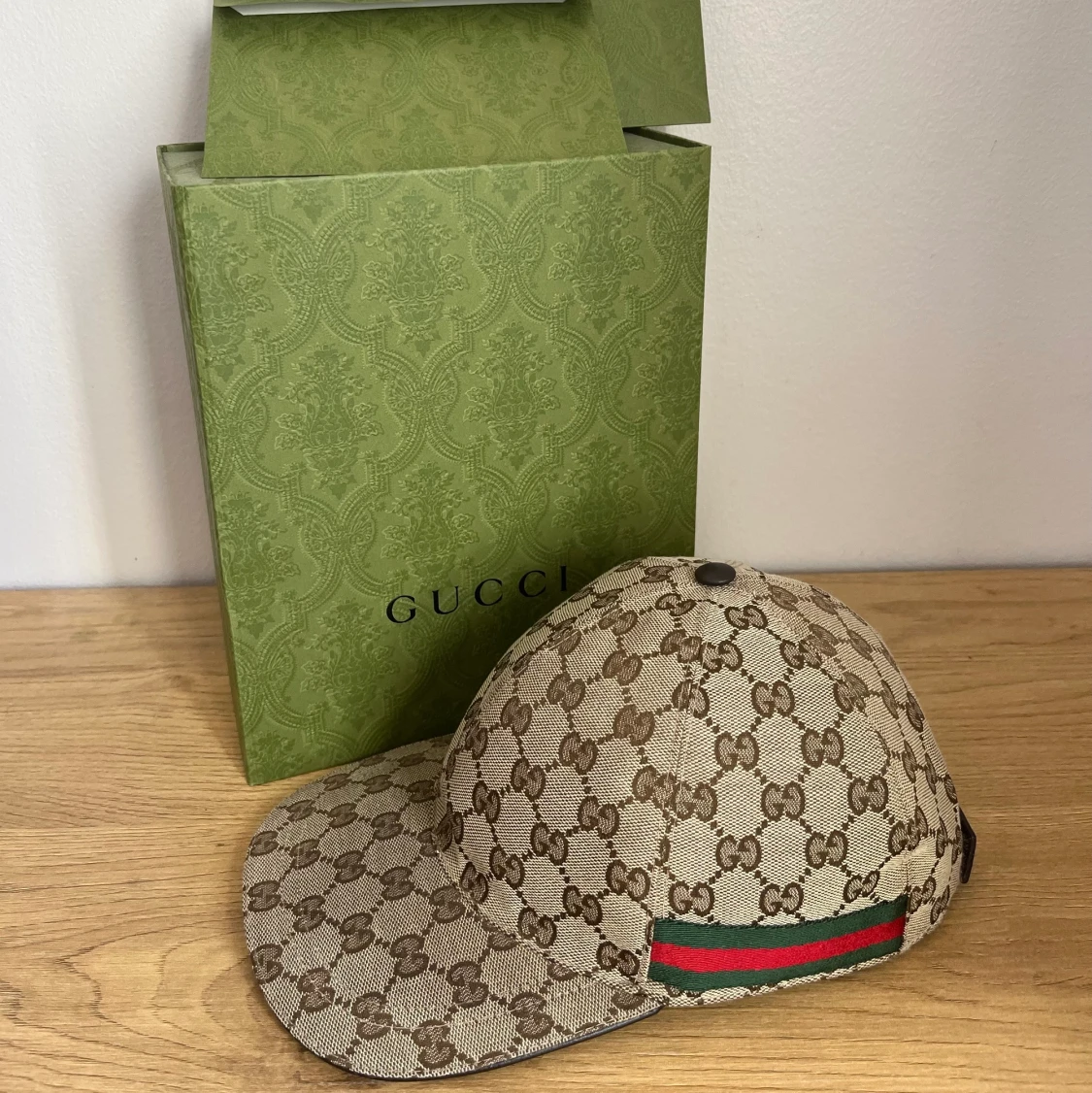 Hej! Säljer en beige Gucci keps i storlek S i ett gott skick, inga skador ser väldigt fräsch ut efter ett halvårs användning. Äkta såklart med kvitto och box som medföljer. Möts upp i Sthlm och fraktar. Ny pris 3500 SEK Mitt pris 2500 SEK
