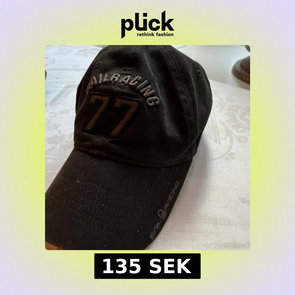 Svart keps från Sail Racing med broderad text och siffran 77 framtill. Justerbar rem baktill med metallspänne och Sail Racing-logga. Klassisk böjd skärm och stilren design, perfekt för en sportig look.