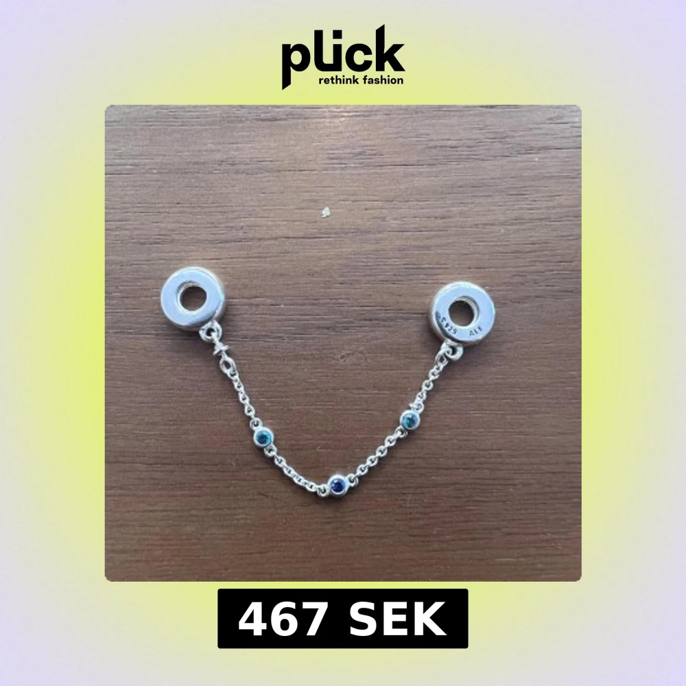 Säkerhetskedja med blåa stenar i silver till Pandora armband. Så gott som nytt. Använt färre än 10 gånger. (Armband ingår ej i priset)