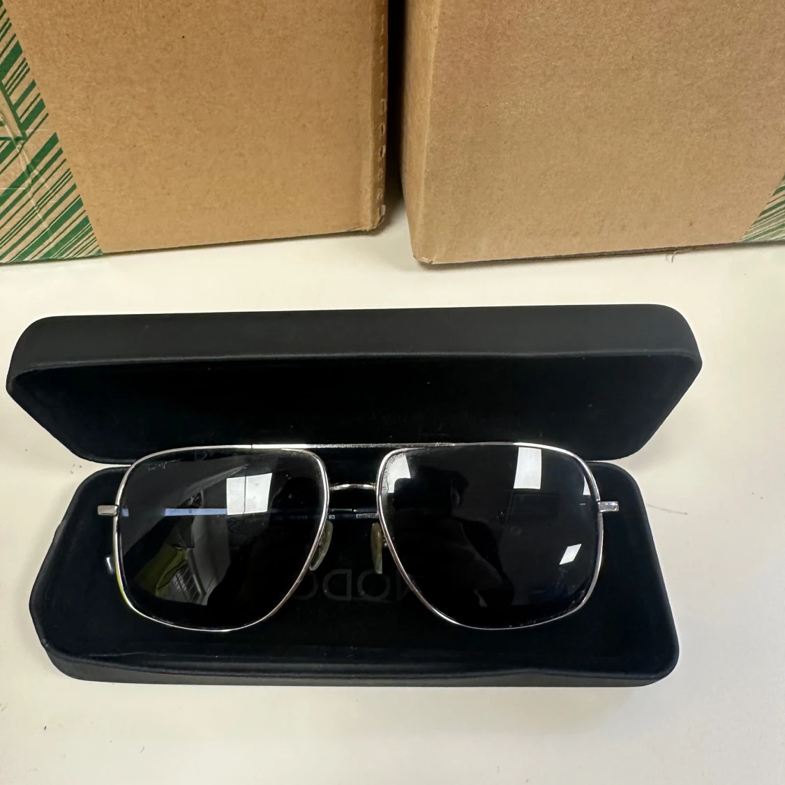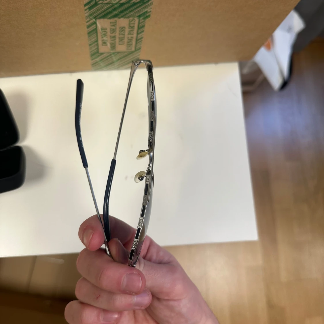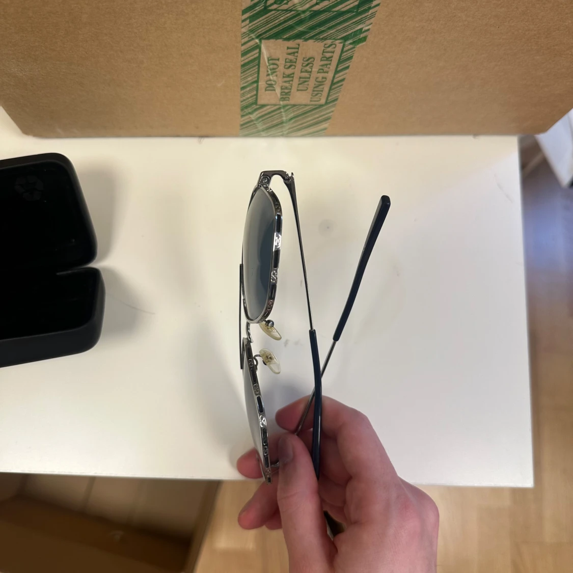 Nypris var 2400 kr, Säljer mina snygga solglasögon i klassisk pilotmodell med svarta glas och silvrig metallram. Skalmarna är svarta med tunna detaljer och näskuddar för extra komfort. Kommer i ett svart fodral. Svarta pilotbågar med silvrig metallram