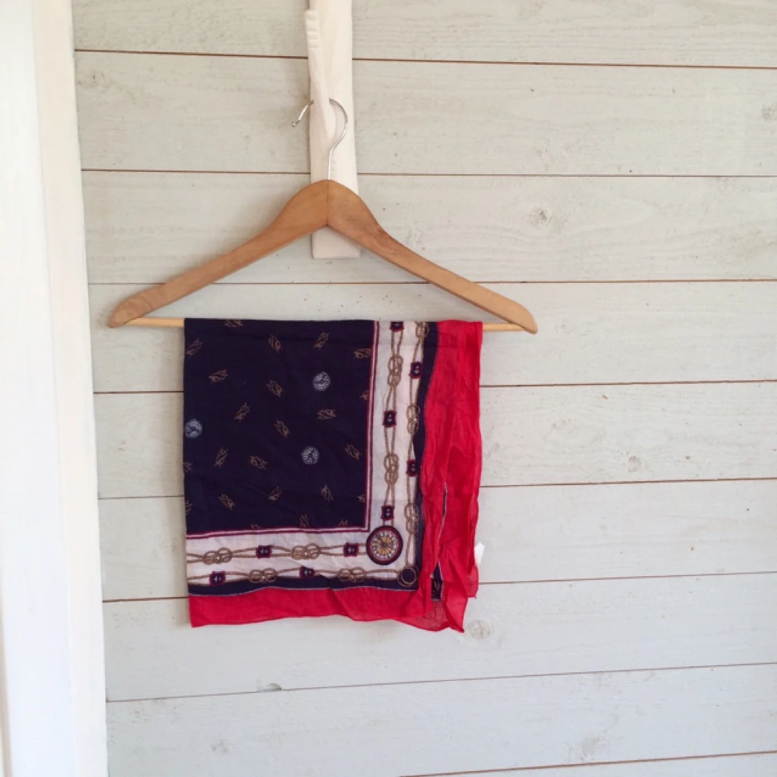 Fin fyrkantig sjal! Mycket bra skick. Lite båt-känsla i designen.