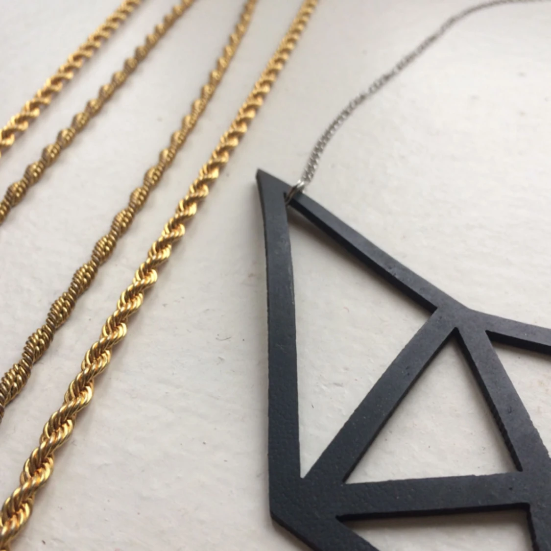 Necklaces. The black one finnish design and made out of old bike inner tires. 50kr for the black, 50kr for both chains. Frakt +20kr