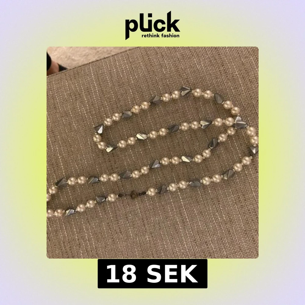 Längre halsband med stenar (ej äkta) 🖤🤍 Jättefint att styla tillsammans med andra halsband 💖Superfint skick, lite mörk på knäppet i nacken men inget som stör 🌸