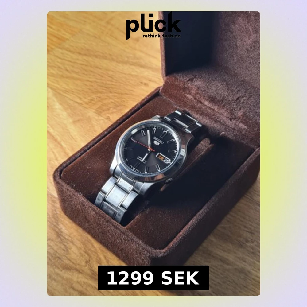 Seiko 5 SNK795 21-jewel automatic (self-winding) Inköpt för runt 2500 SEK Nyskick och fungerar felfritt. Endast använd vid 2-3 tillfällen. Har legat runt något år. Håller tiden väl. +/- 10s per dygn Diameter: ~37mm Armband passar ~18-19cm (kan såklart justeras till mindre storlekar) Fin ask medföljer (icke-orginal)