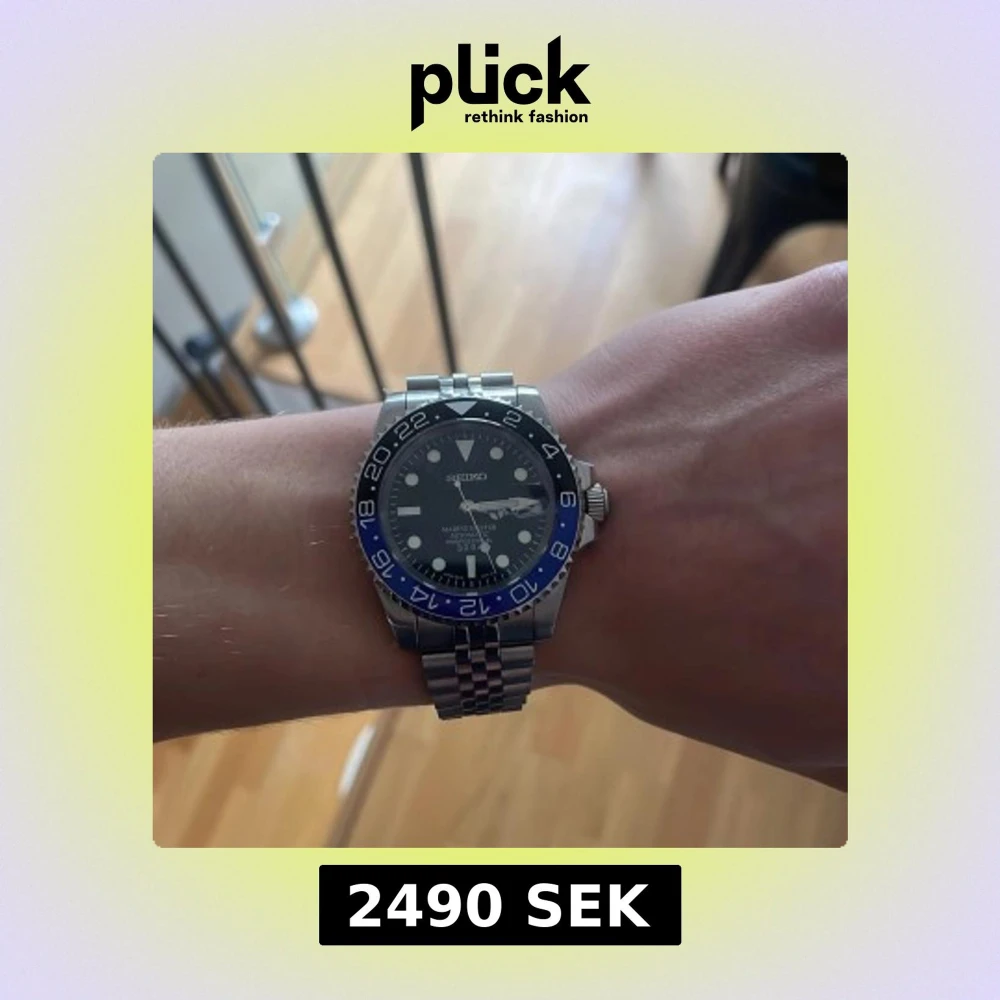 Snygg Seiko-klocka med ett silverfärgat armband och en ceramic blå och svart bezel. Urtavlan är svart med datumvisning. Klockan är 40mm vilket passar väldigt många. Klockan är helt ny och köpt av klokkespesialisten.no, orderbekräftelse finns! Skriv privat för fler frågor!