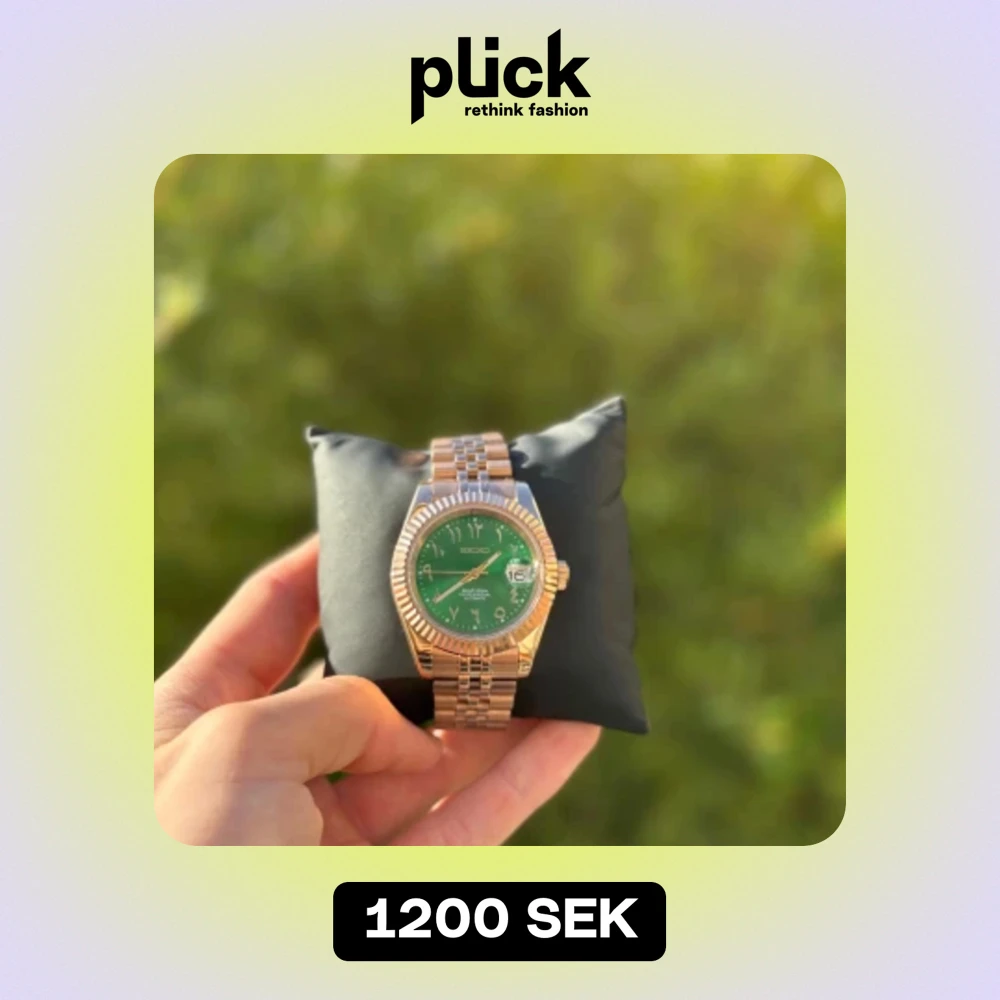 Seiko datejust mod med en grön arabisk urtavla. Klockan är aldrig använda och är vattentät till 50m. Urverket är seikos egna NH35 och håller tiden riktigt bra. Sen så är klockan utrustad med kristal glas på bak och fram så den repas inte.