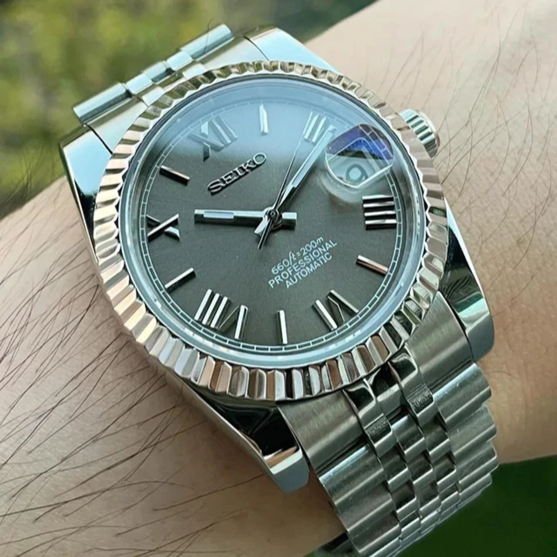 Nu är denna roman gray Datejust-mod färdigbyggd och till salu! (Custom-made.) Diameter: 39 mm eller 36 mm | Tjocklek: 12 mm | Automatiskt NH35A-urverk | Safirglas (reptåligt) | 316L stålboett & armband | 3 ATM vattentäthet | Genomskinlig baksida (kristall) | Klockfodral & verktygskit ingår. Frågor? DM!
