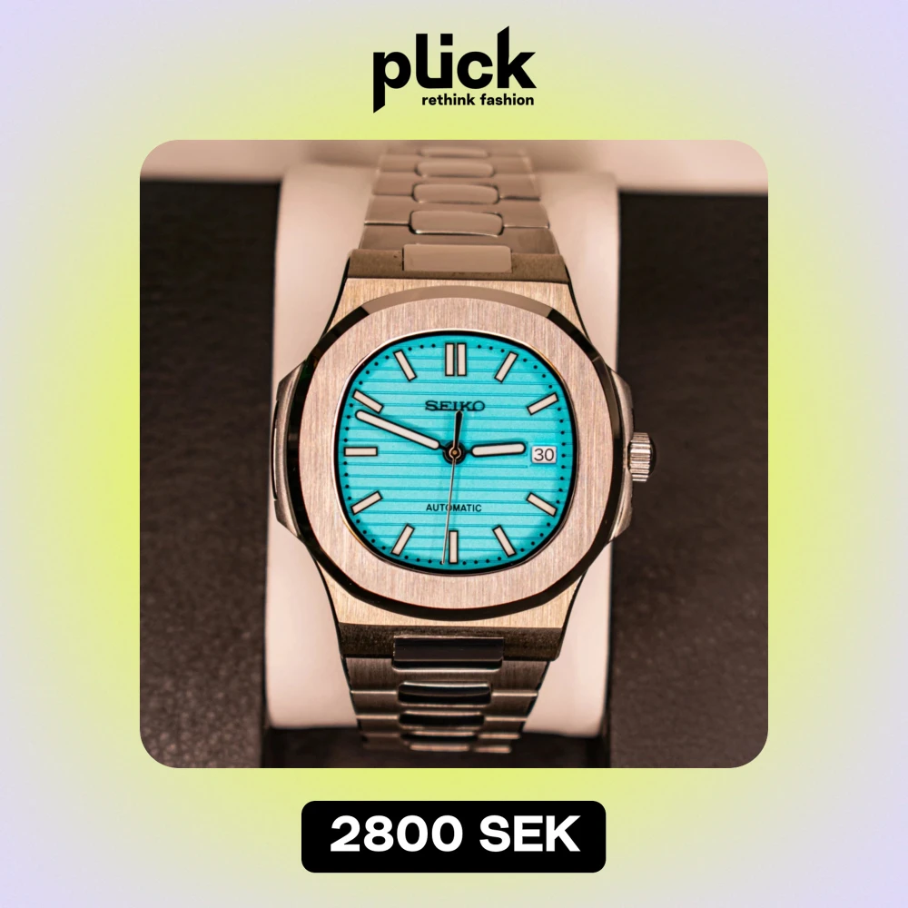 Seiko Tiffany Blue. Klockan har ett robust armband i silverfärgat rost fritt stål och en stilren design som passar både till vardags och fest. Perfekt för dig som vill ha en klocka som sticker ut! Rörelsen är NH35 automatic. Besök gärna oss i Instagram: KeeWeemods