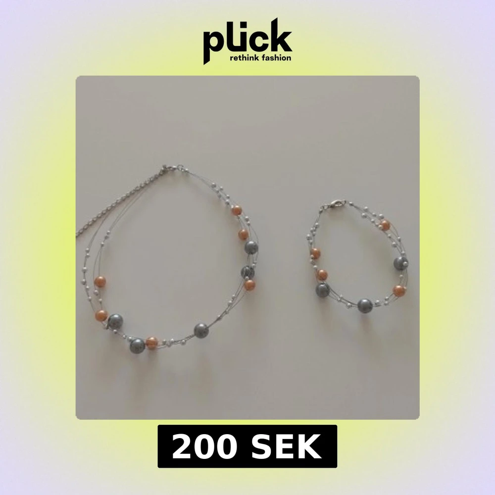 Snyggt set med halsband och armband i silverfärgad metalltråd med pärlor i silver, guld och vitt. Flera tunna trådar med pärlor i olika storlekar ger ett coolt och luftigt uttryck. Perfekt för dig som gillar att mixa färger och detaljer.