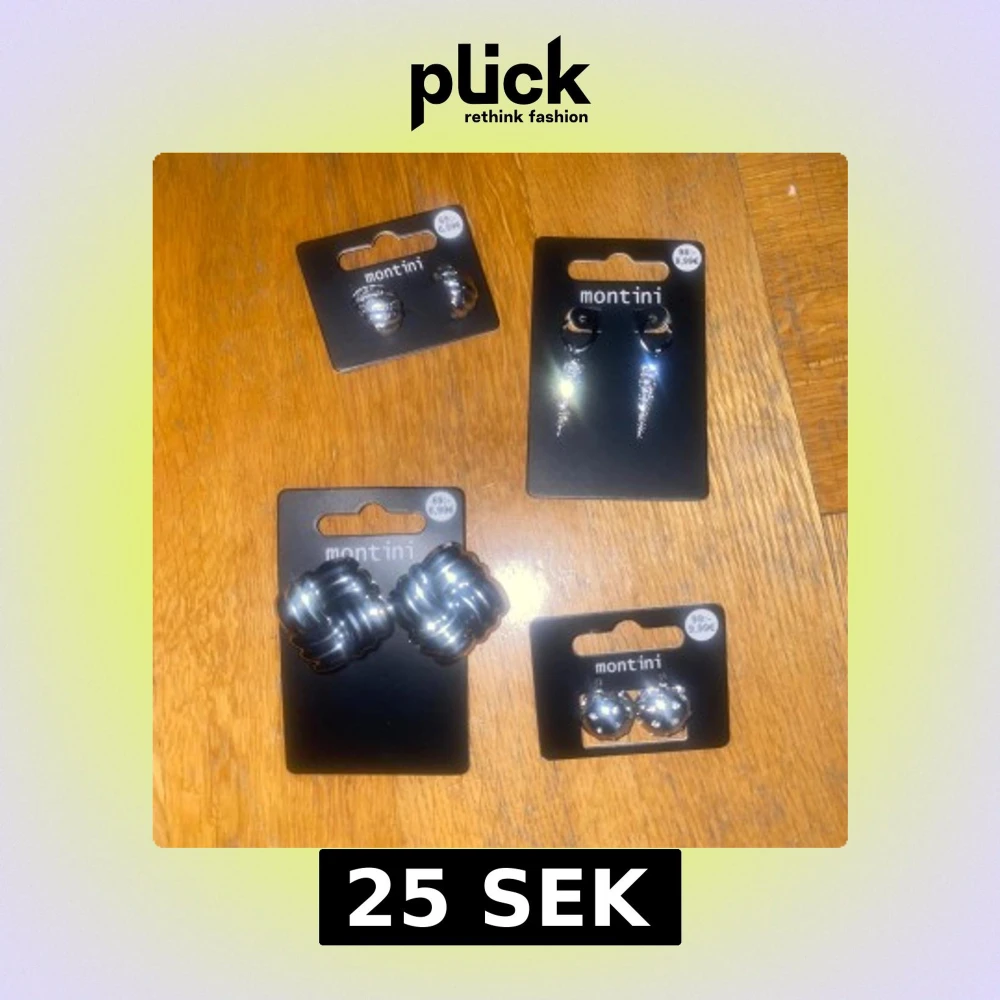 Upptäck tre olika par örhängen från Montini. Ett par med stora, vridna silverknutar, ett par med glänsande silverkulor och ett par med glittrande droppar. Perfekta accessoarer för att lyfta din stil, inte använda
