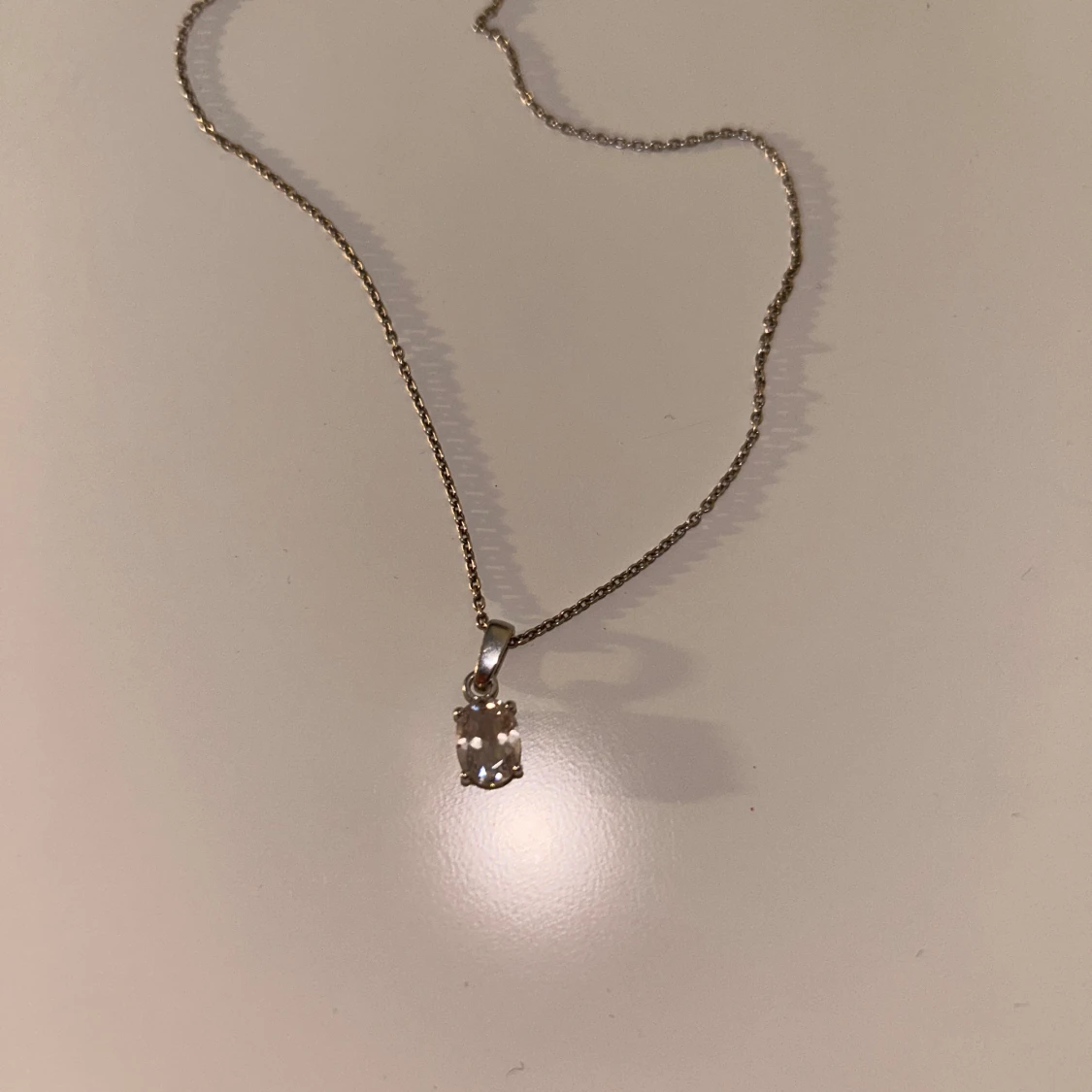 Silverhalsband med en sten. 92,5 % silver Väldigt fint men använder ej då jag inte är en silver tjej.