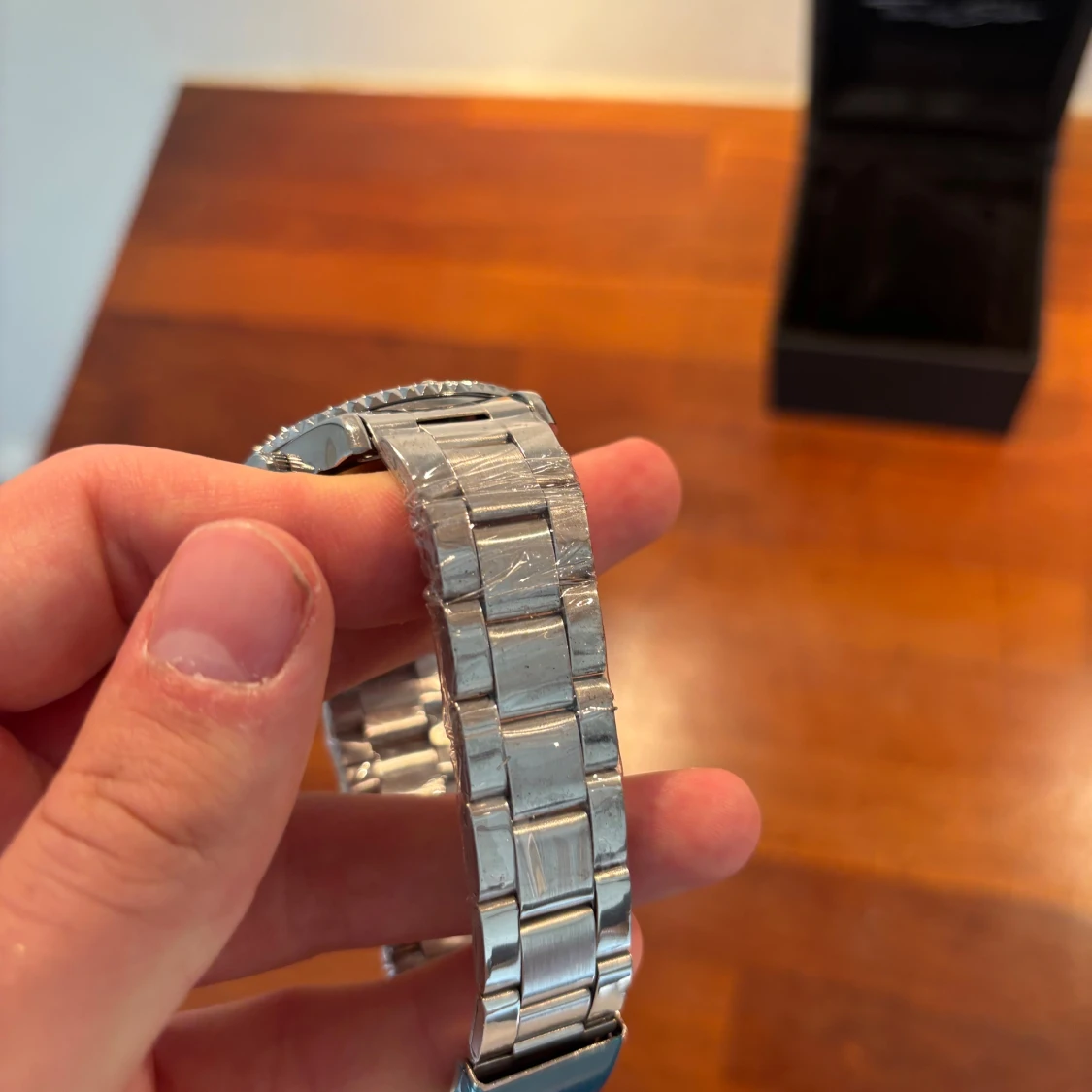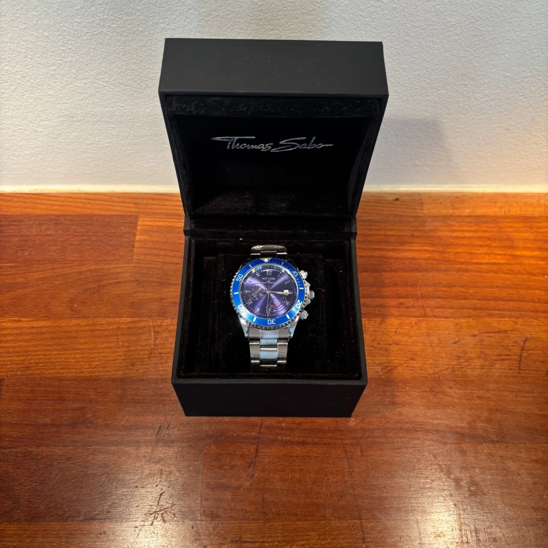 Snygg klocka med blå urtavla och blå bezel. Armband och boett i silverfärgat metall, klassisk länkdesign. Perfekt accessoar för dig som gillar stilrena detaljer och sportig look. Lådan är ej inkluderad