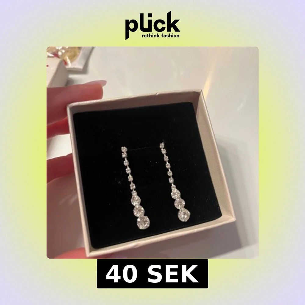 Eleganta silver örhängen med flera glittriga stenar i rad. Perfekta till bröllop, bal eller fest.