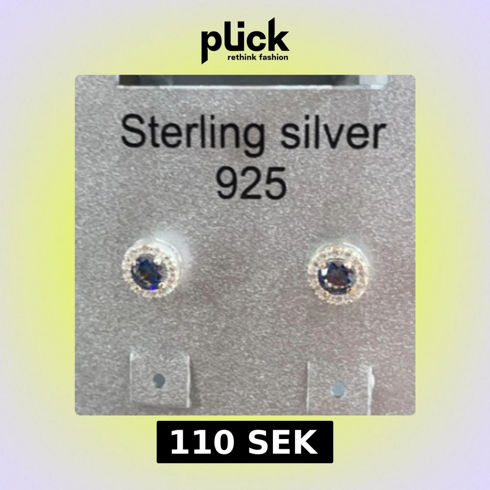 Eleganta örhängen i sterling silver 925 med en gnistrande blå sten i mitten, omgiven av en rad klara stenar. Perfekta för att ge en touch av glamour till din look.