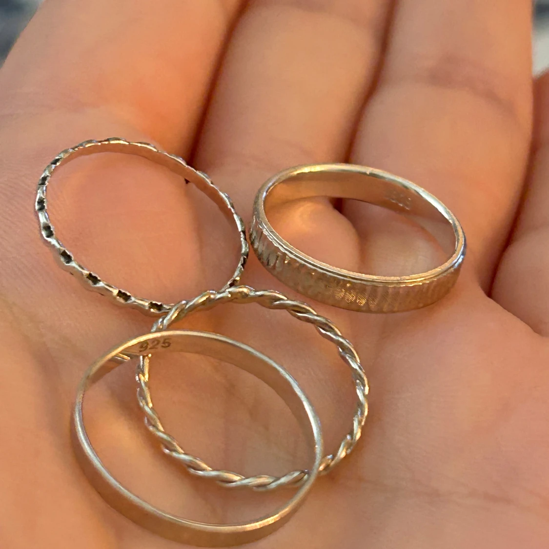 4st 925 sterling silver ringar, blandat storlekar. 16 mm - 17 mm. Fint skick!