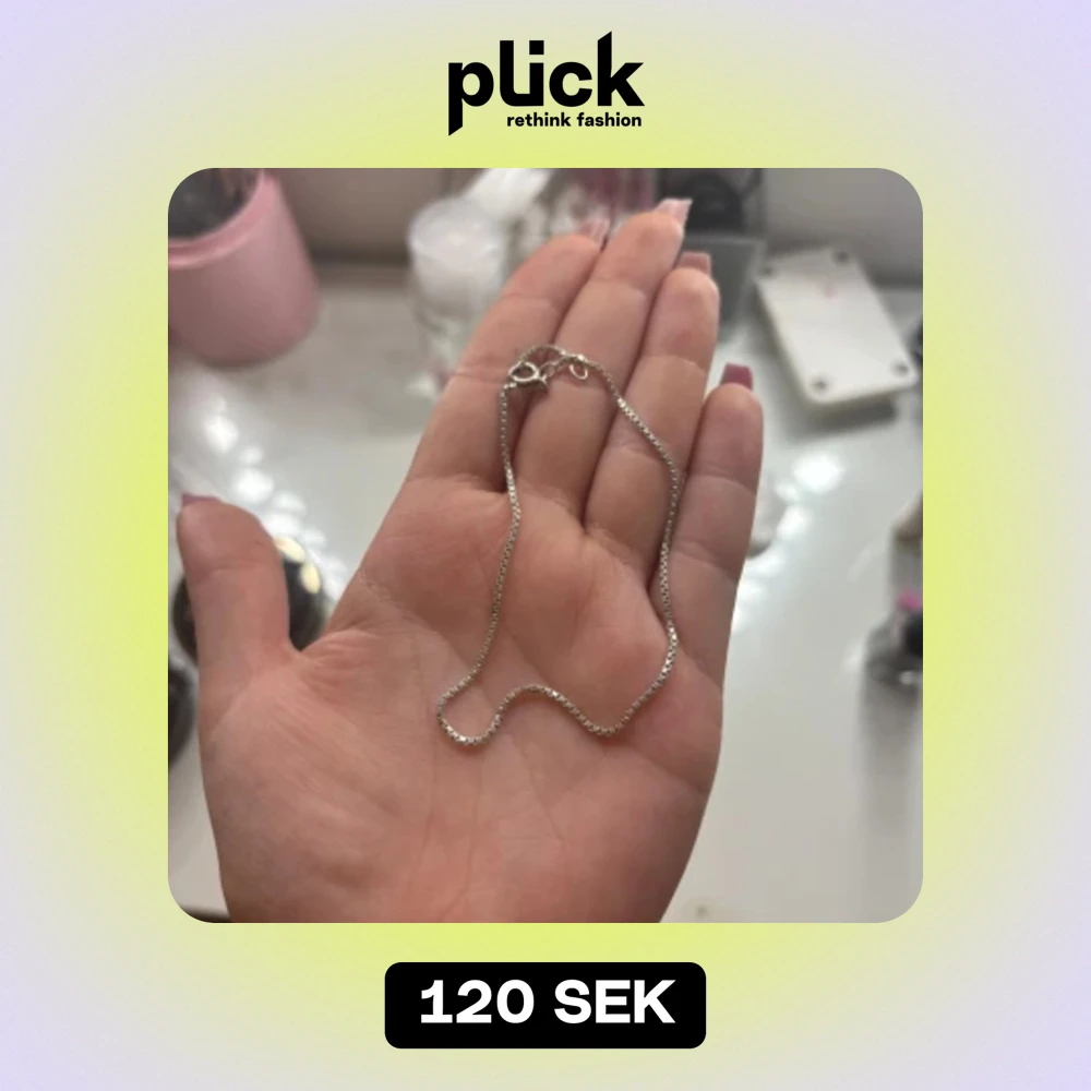 Jättefin vristlänk i silver bärs alltså på foten. Jättefin använd ett par gånger men används ej längre då mim gamla vän köpte den till mig och vi ej är vänner längre samt att jag enbart använder guld. Inga defekter