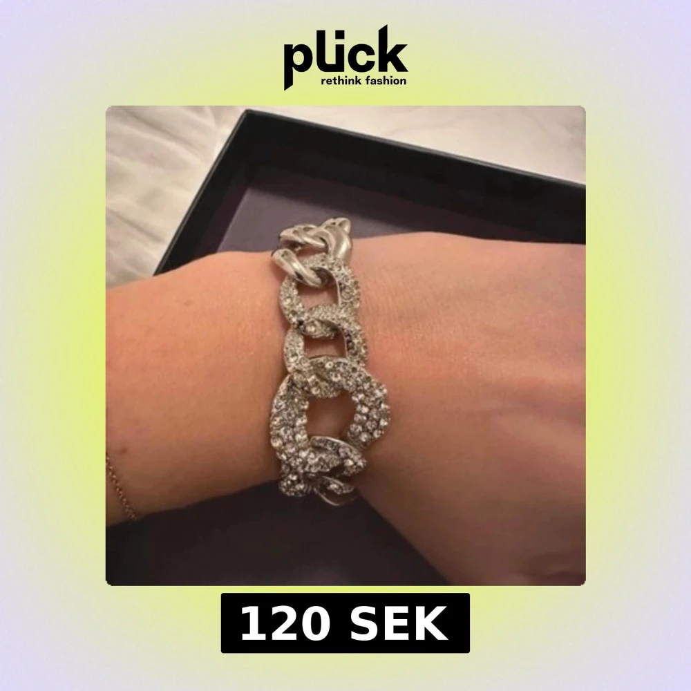 Fint armband i silverfärg med glittrande strass på flera av de ovala länkarna