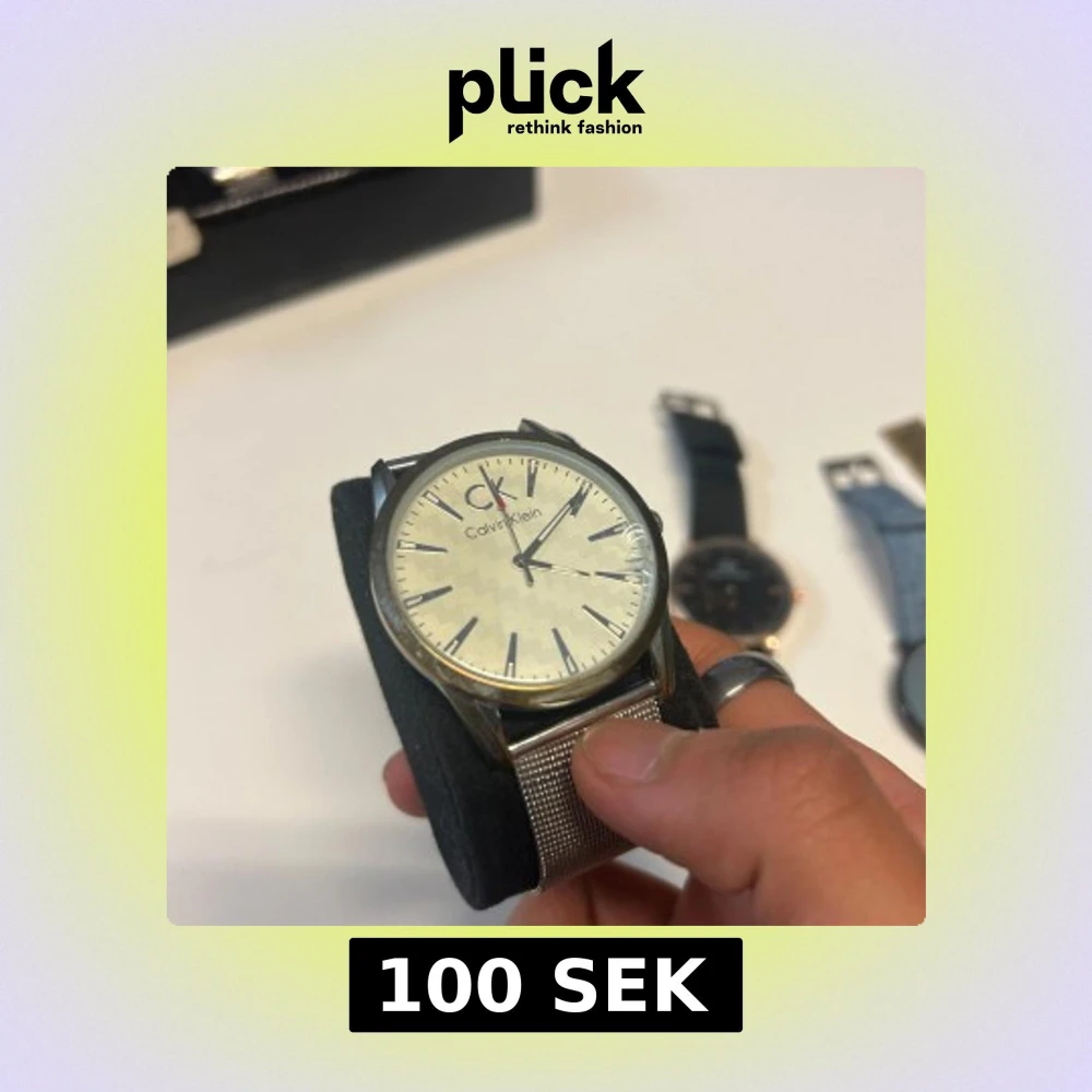 Stilren klocka från Calvin Klein med mesharmband i silverfärgat metall och en ljus urtavla med subtilt mönster. Urtavlan har minimalistiska svarta index och CK-logga upptill. Perfekt accessoar för dig som gillar enkel och modern design. OBS! Sprickor på högra sidan, priset är inte hugget i sten!