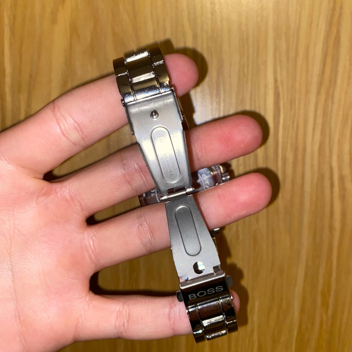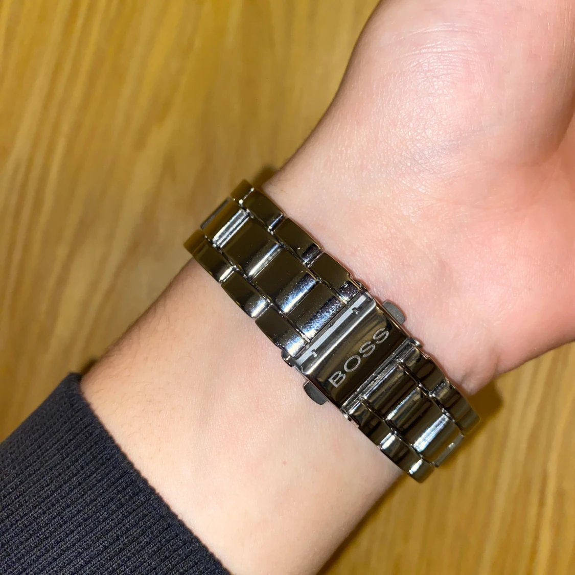 Stilren klocka från BOSS i silverfärgat rostfritt stål med svart urtavla och tre mindre subdials. Länkar i metall och tydlig BOSS-logga på spännet. Klockan har sportig känsla med tachymeter runt urtavlan och robust design. Perfekt accessoar för dig som gillar klassisk stil.