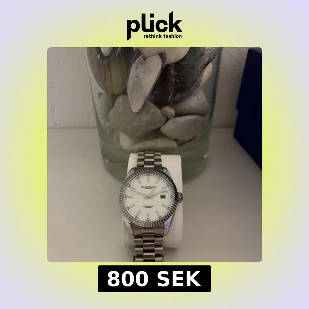 Snygg silverfärgad klocka från Stuhrling med vit urtavla . Klockan har en klassisk design med en robust länkarmband i metall. Perfekt för en stilren look. Hör av dig vid fler frågor eller ev bilder 😀