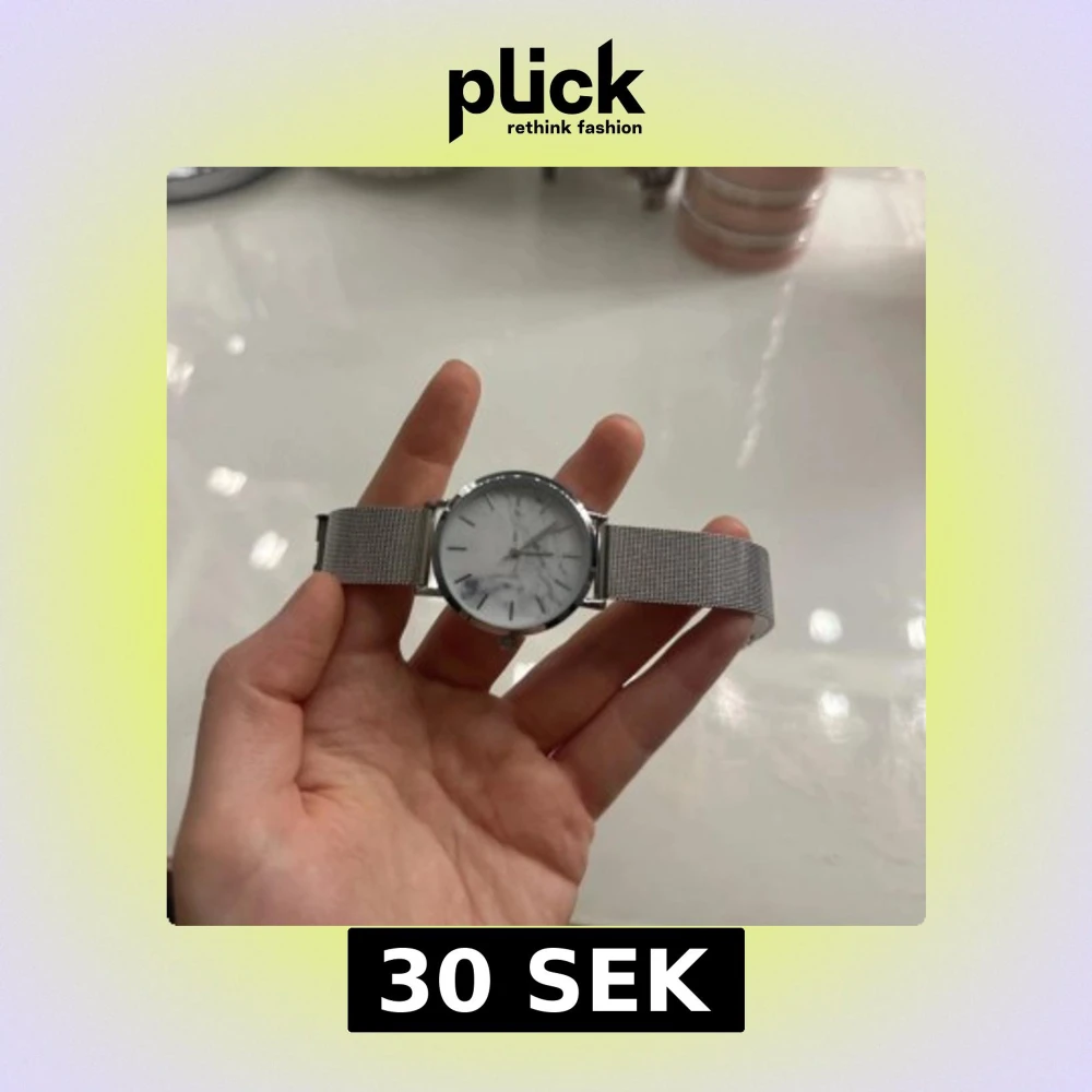 Stilren klocka med silverfärgat mesharmband och rund urtavla i vit marmorlook. Klockan har minimalistisk design med tunna visare och indexmarkeringar. Perfekt accessoar för en clean och modern stil.