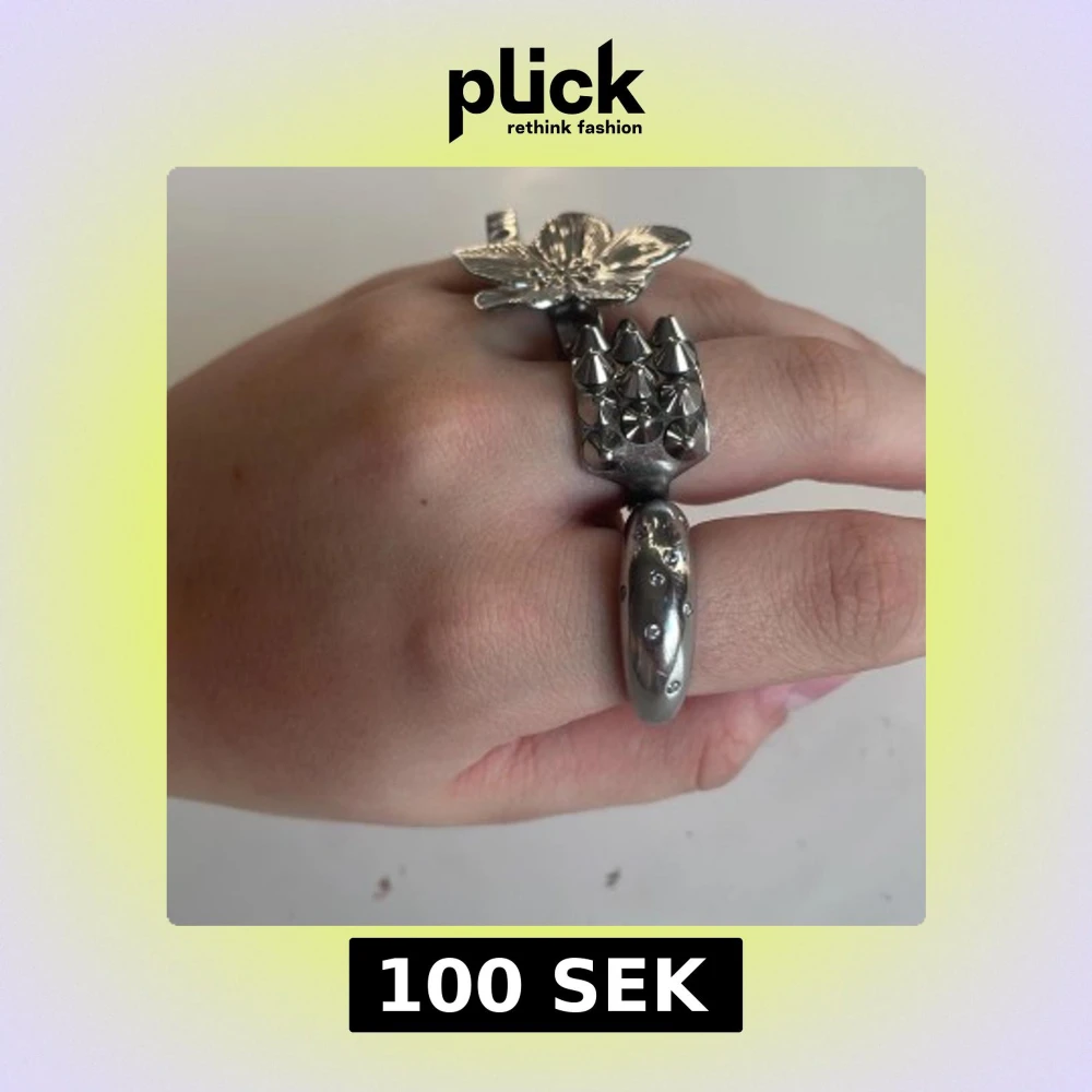 Unik silverfärgad ring med ett vackert blommotiv och små stenar. Ringen har en slät yta med subtila detaljer som ger en elegant touch. Perfekt för att ge en stilfull accent till din look.