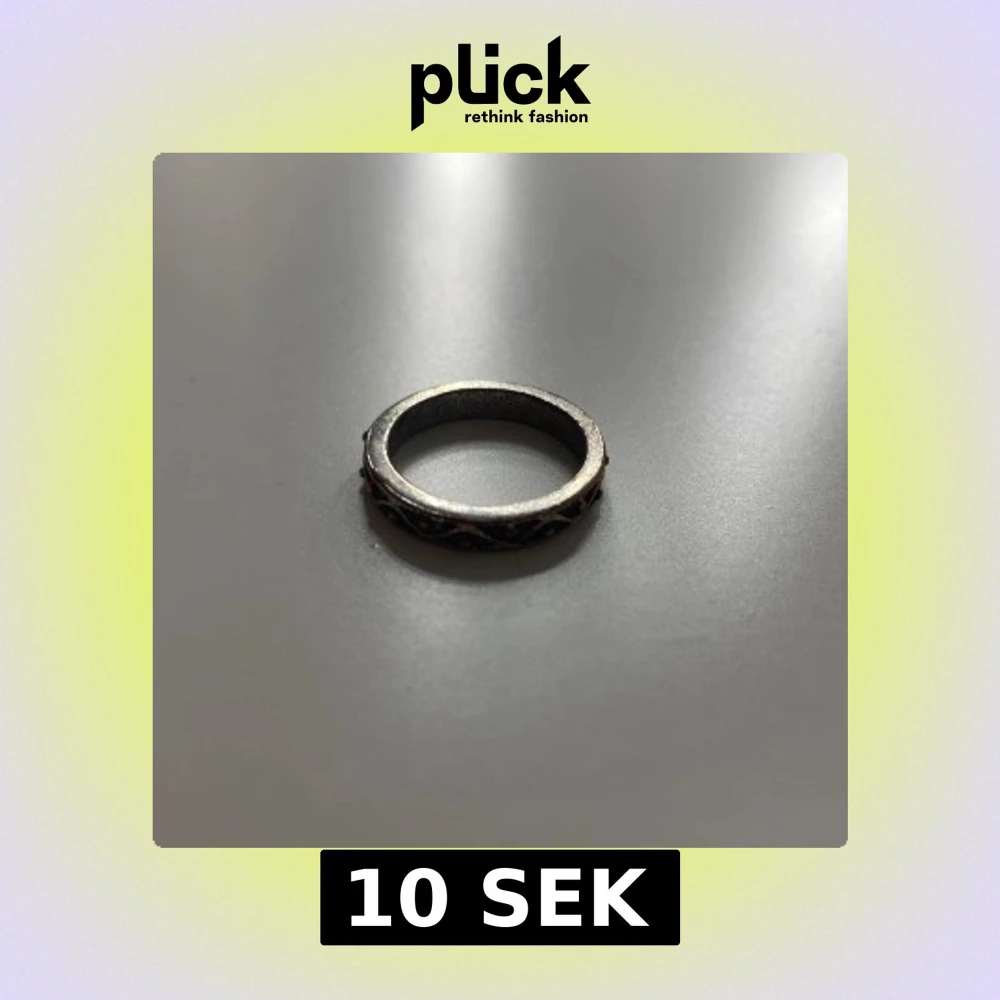 Säljer en elegant silverfärgad ring med ett intrikat mönster runt om. Ringen har en klassisk design som passar perfekt för både vardag och speciella tillfällen.