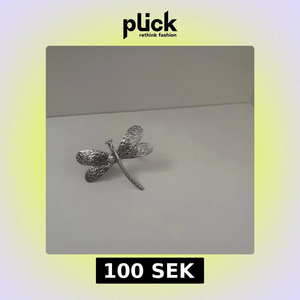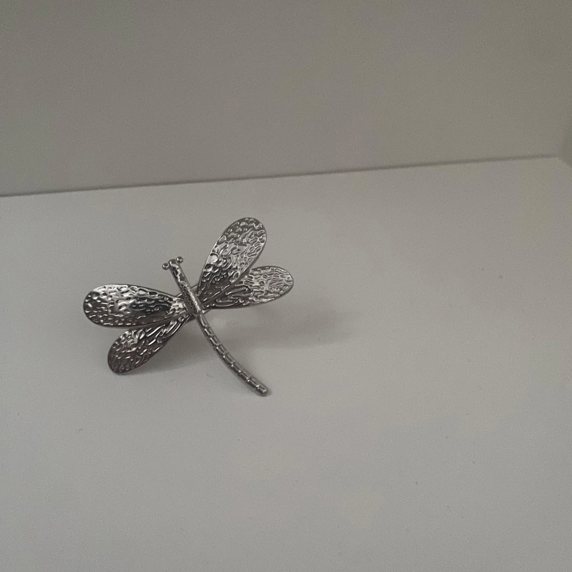 Unik ring i form av en trollslända med detaljerade vingar i silverfärgad metall. Perfekt accessoar för att ge din outfit en cool och personlig touch.
