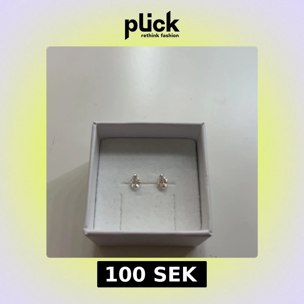 Snygga små örhängen i silverfärg med droppformad design och glittrande stenar. Perfekta för att ge en elegant touch till din stil. Kommer i en vit ask.