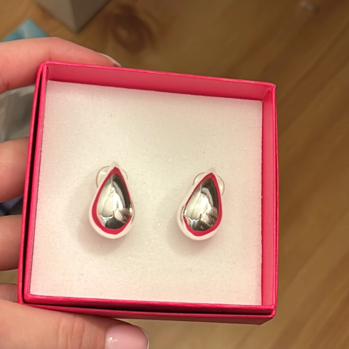 Snygga droppformade örhängen från SNÖ of Sweden i blank silverfärg. De har en stilren och modern design som verkligen poppar. Perfekta för dig som gillar minimalistiska smycken med en twist.
